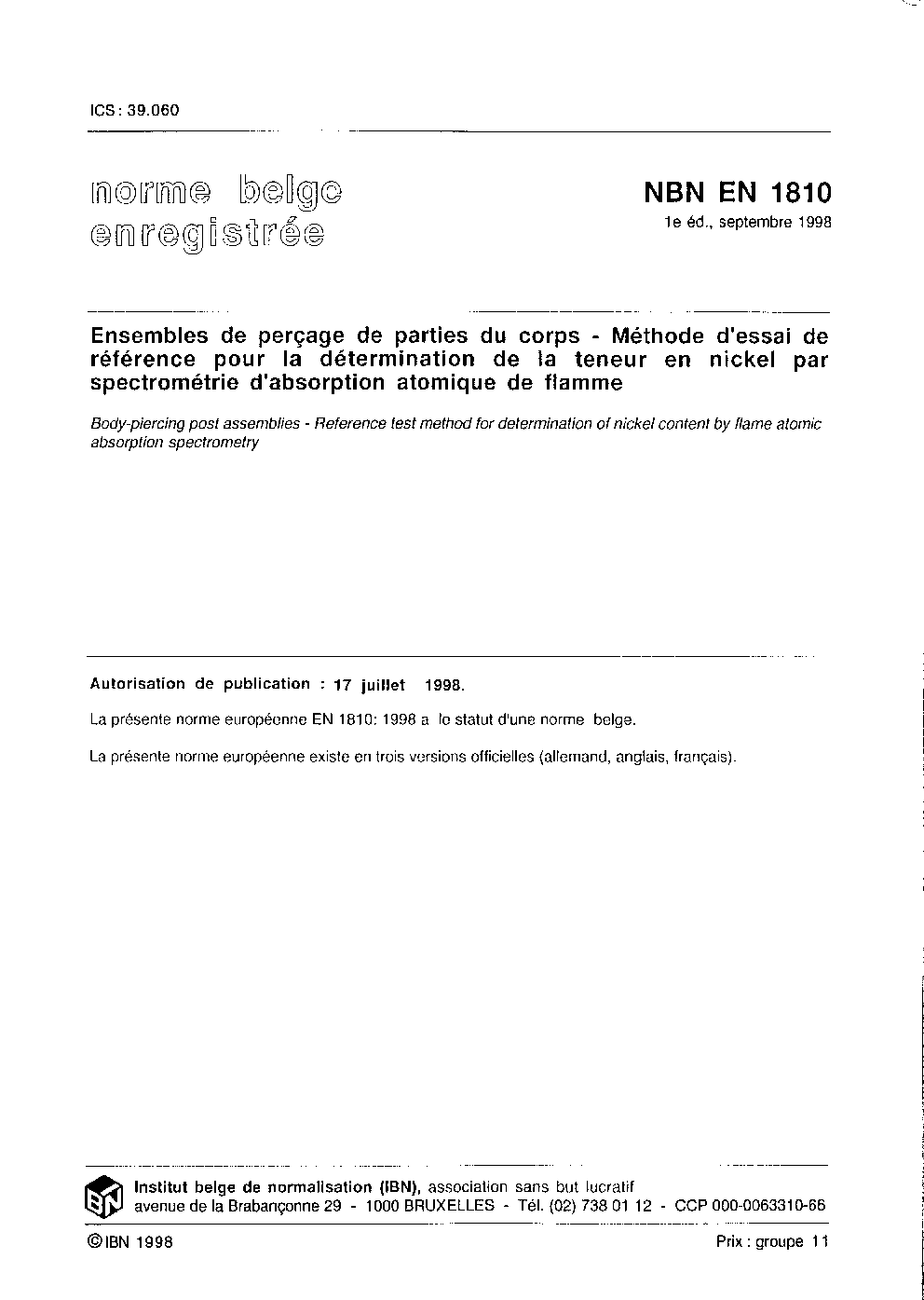 | Publisher | Bureau de Normalisation Belge (NBN) |
