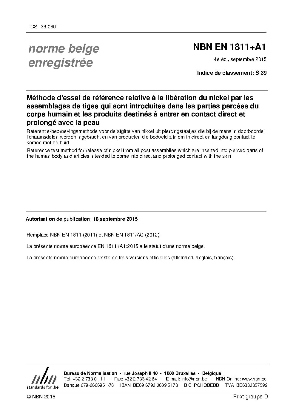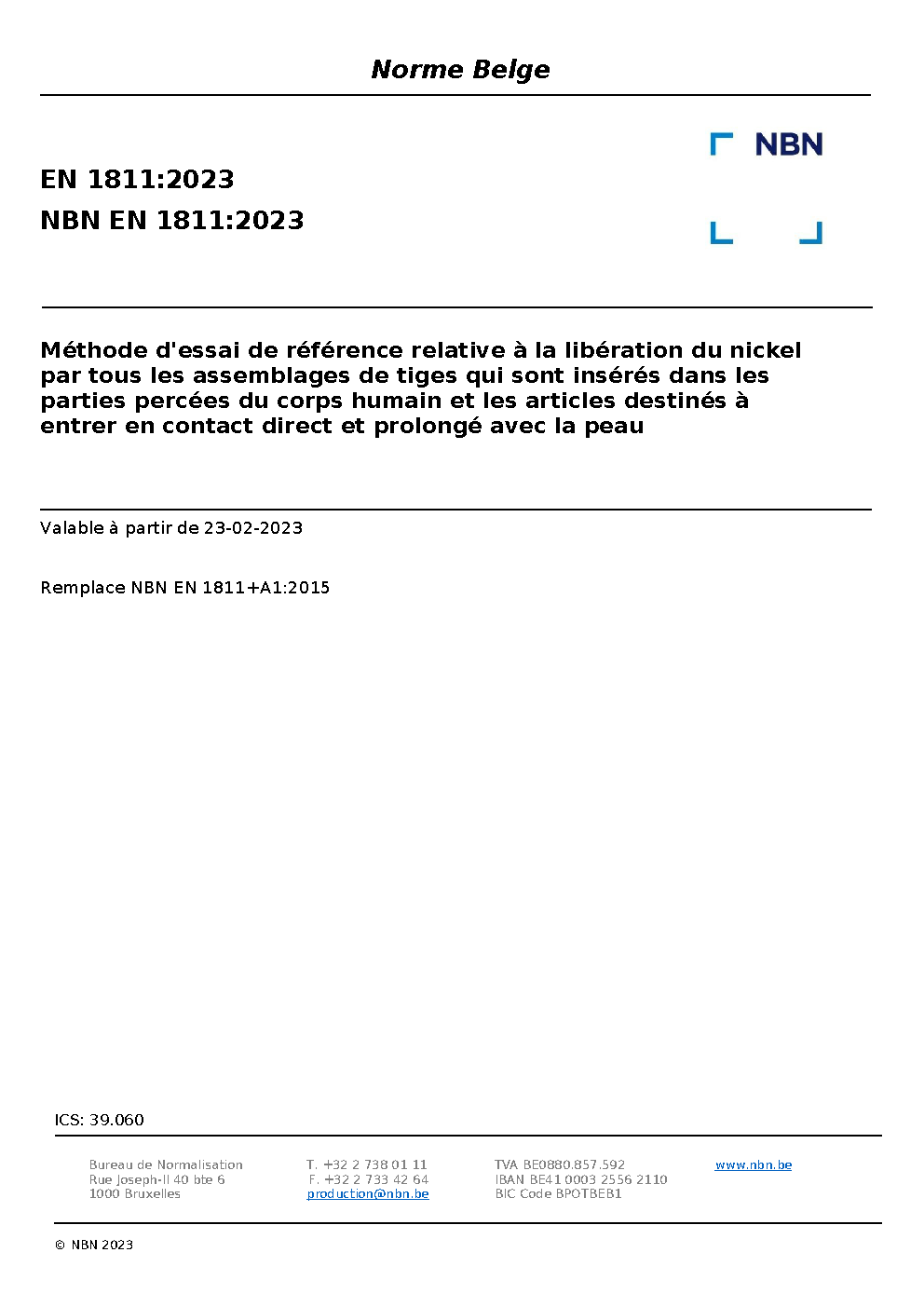 | Publisher | Bureau de Normalisation Belge (NBN) |