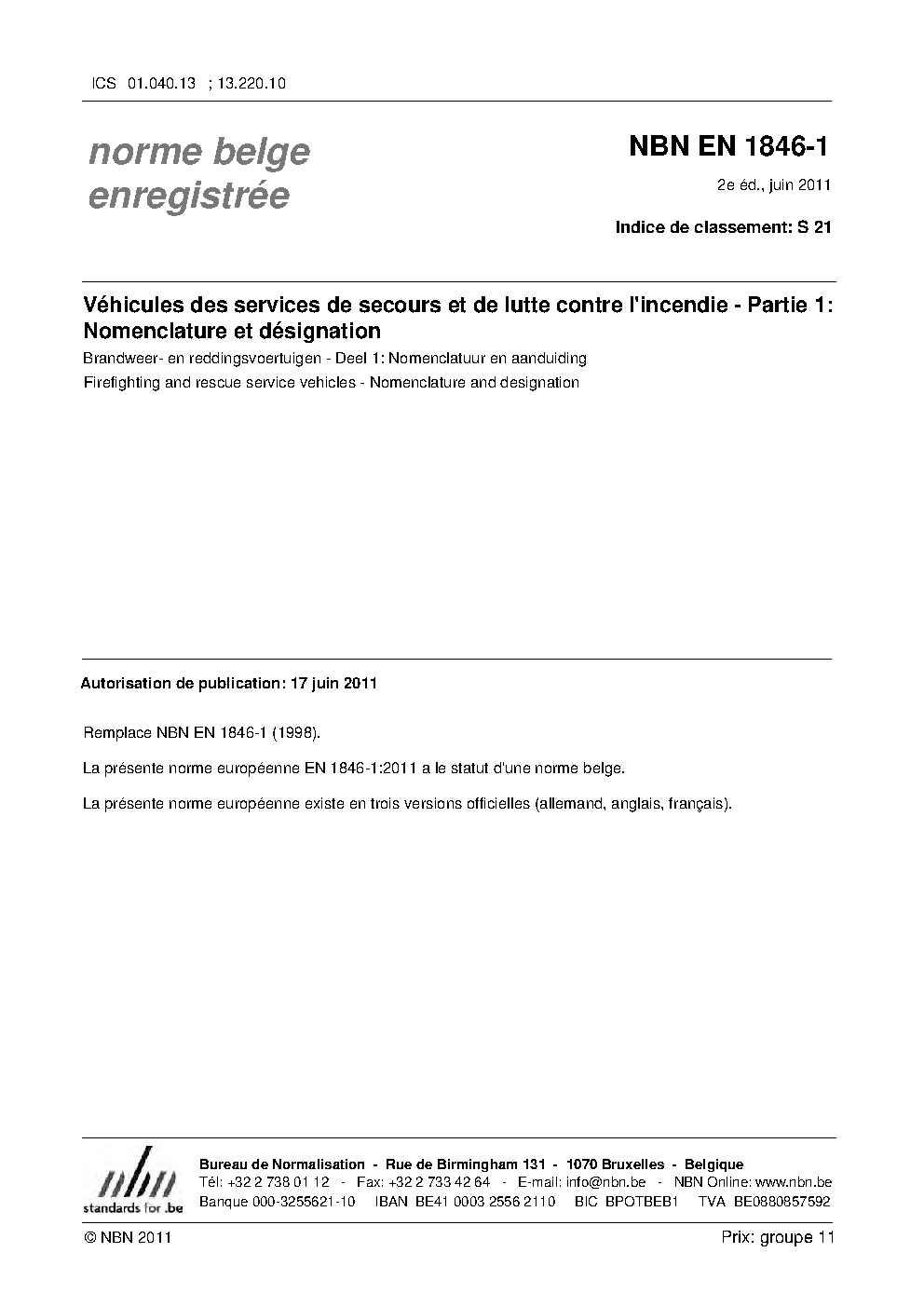 | Publisher | Bureau de Normalisation Belge (NBN) |