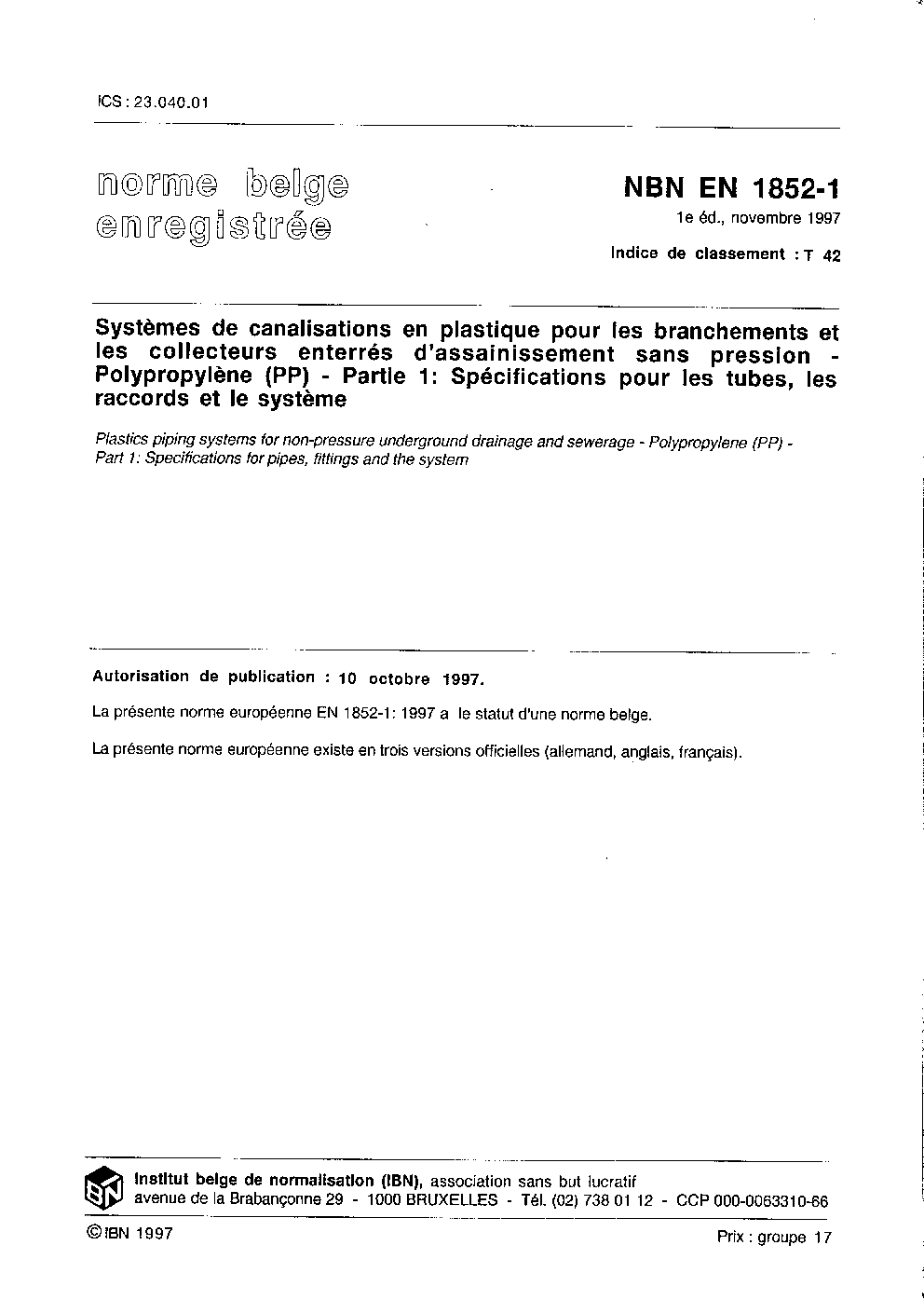 | Publisher | Bureau de Normalisation Belge (NBN) |