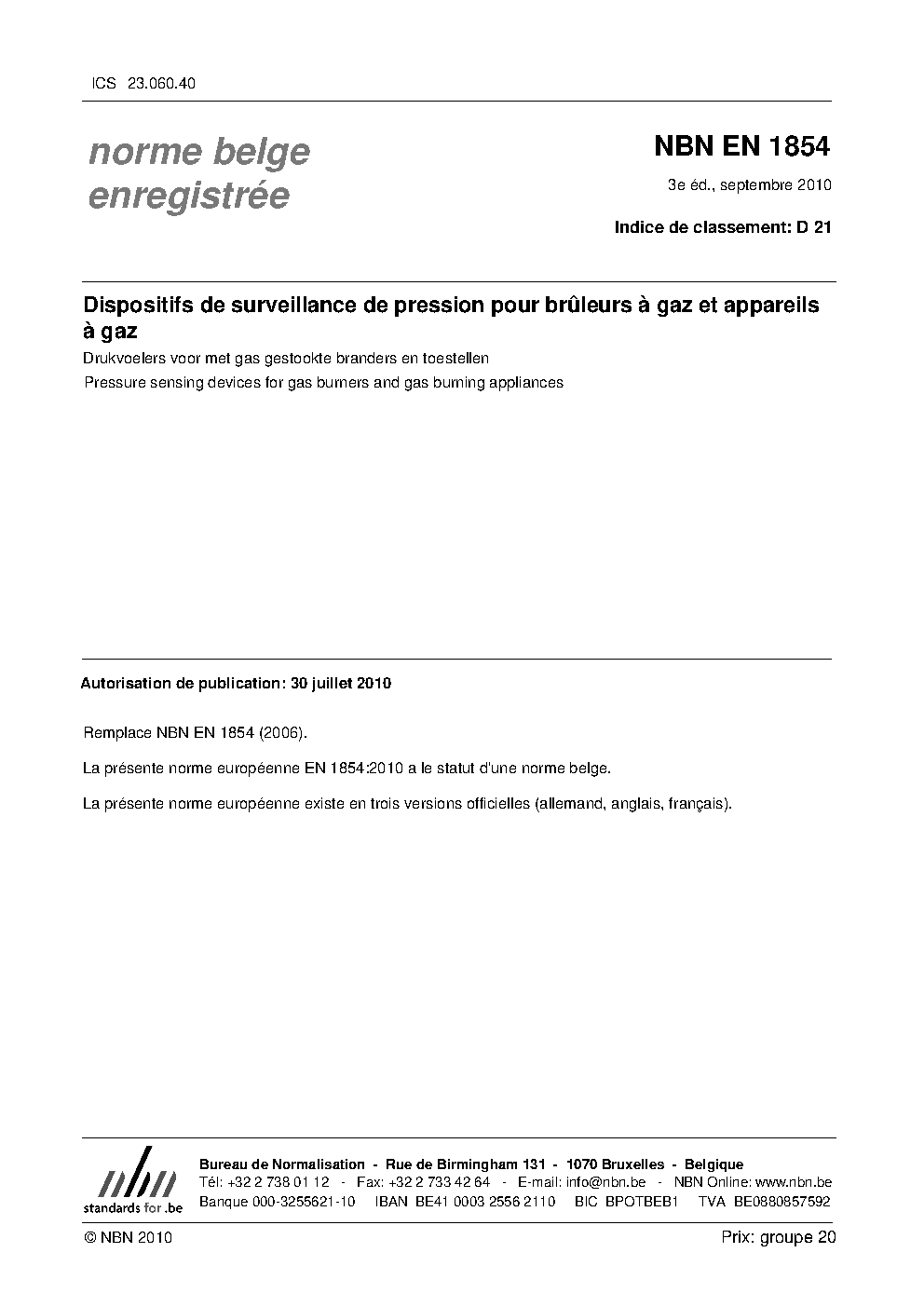 | Publisher | Bureau de Normalisation Belge (NBN) |