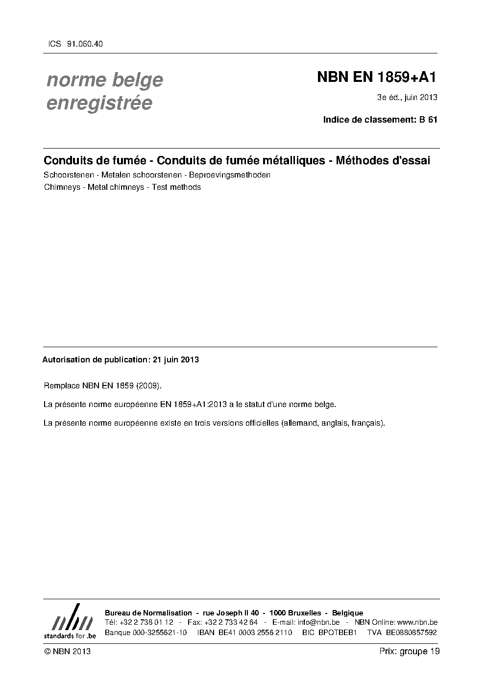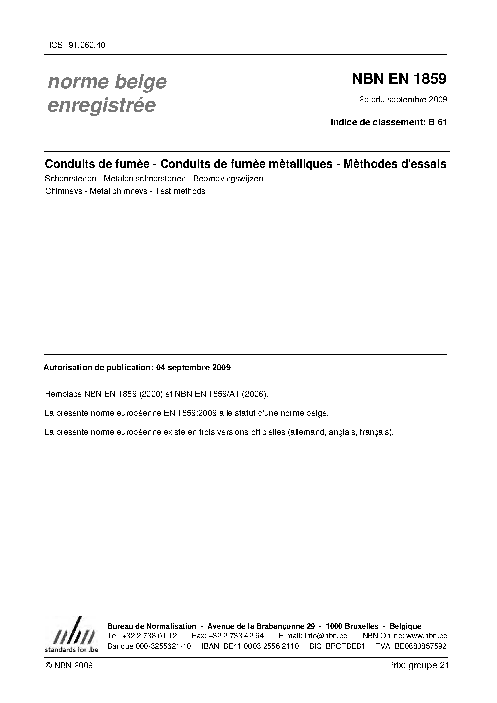 | Publisher | Bureau de Normalisation Belge (NBN) |