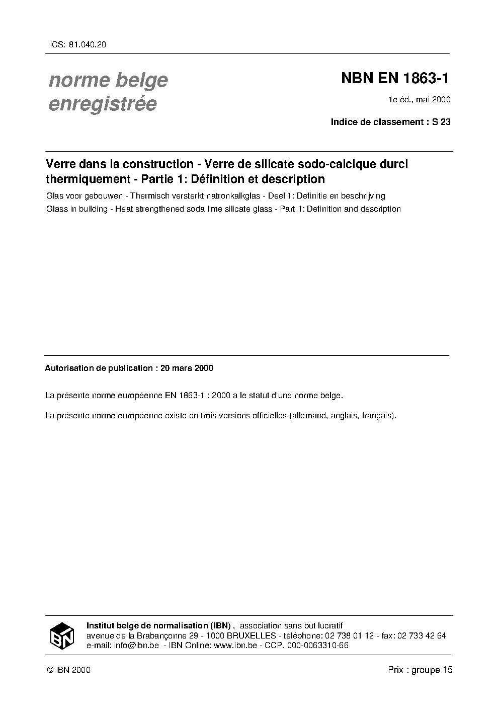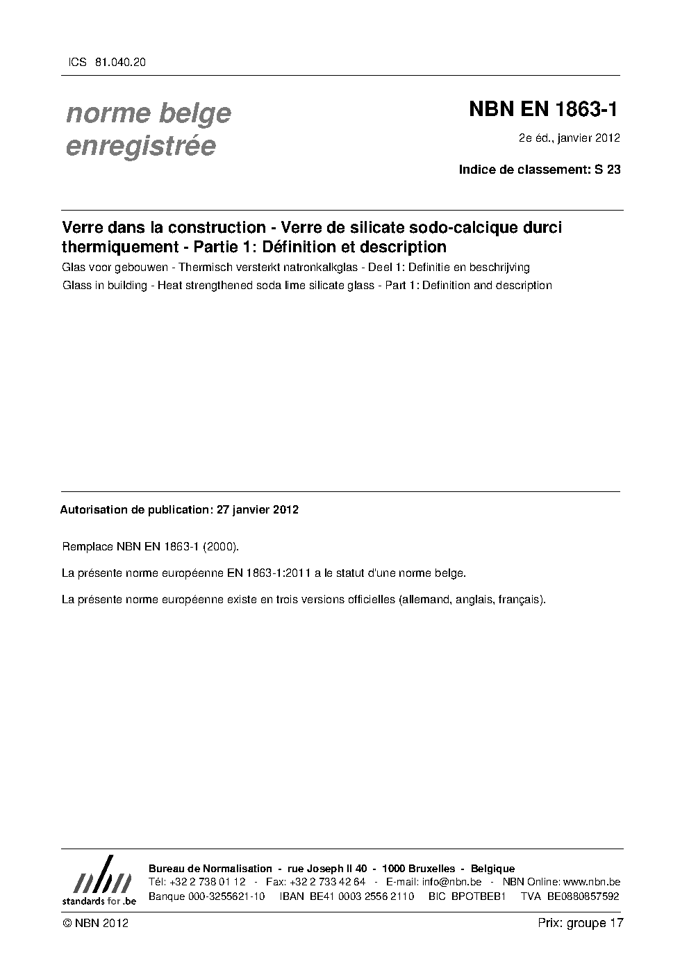 | Publisher | Bureau de Normalisation Belge (NBN) |