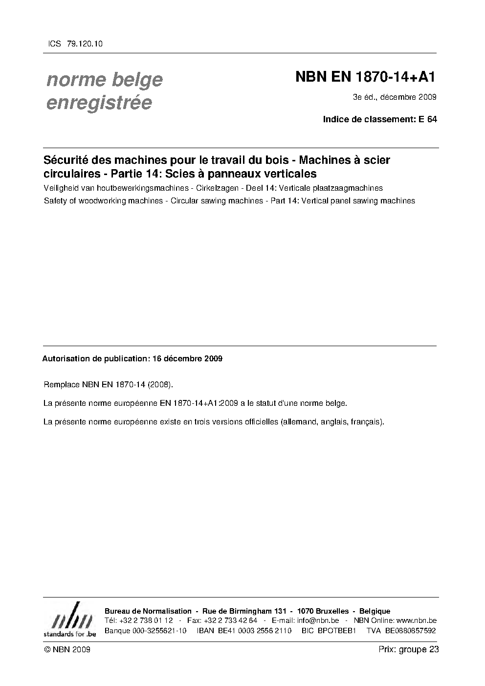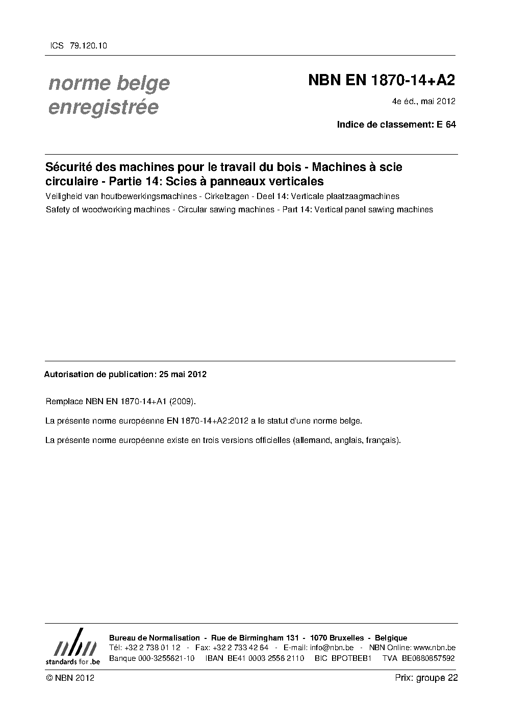 | Publisher | Bureau de Normalisation Belge (NBN) |
