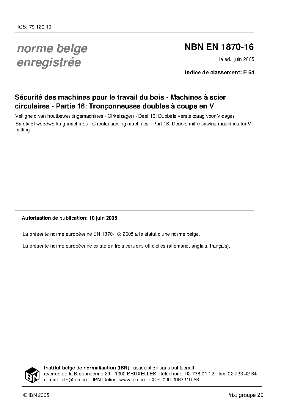 | Publisher | Bureau de Normalisation Belge (NBN) |
