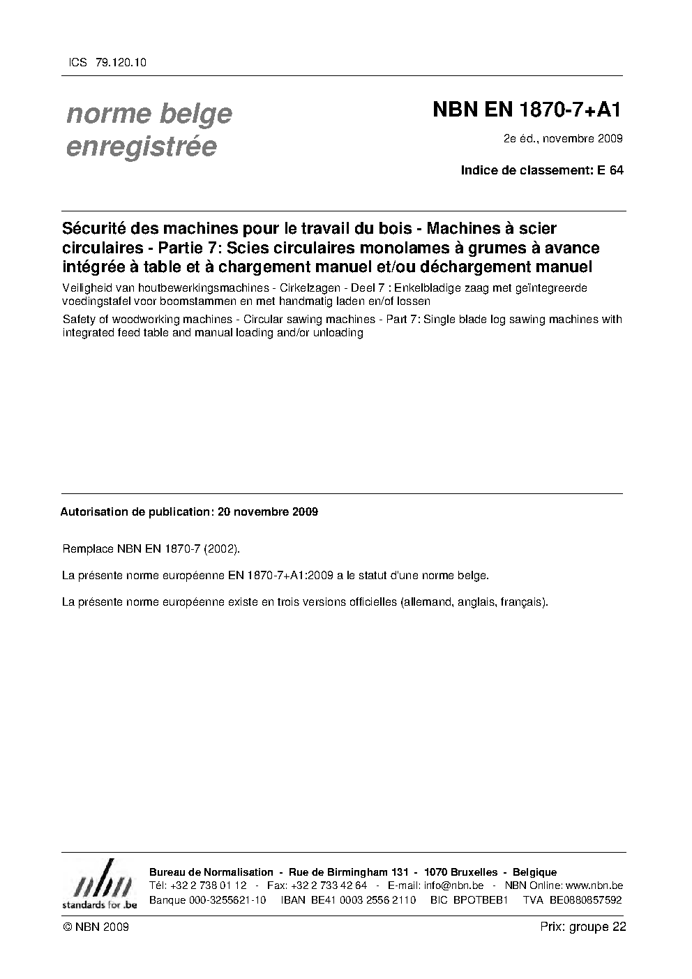 | Publisher | Bureau de Normalisation Belge (NBN) |