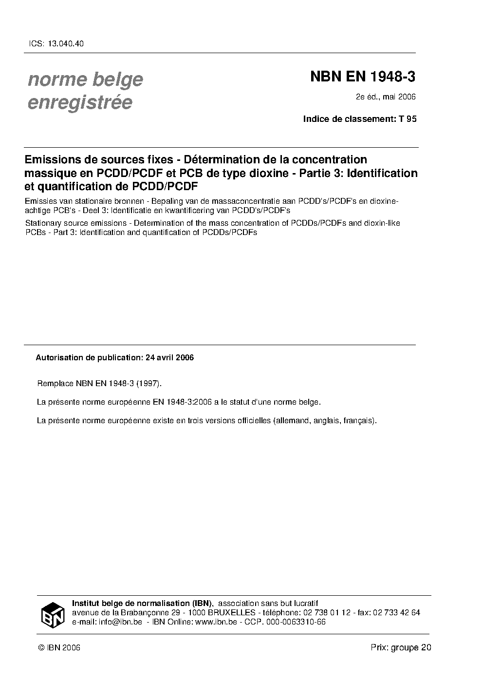 | Publisher | Bureau de Normalisation Belge (NBN) |