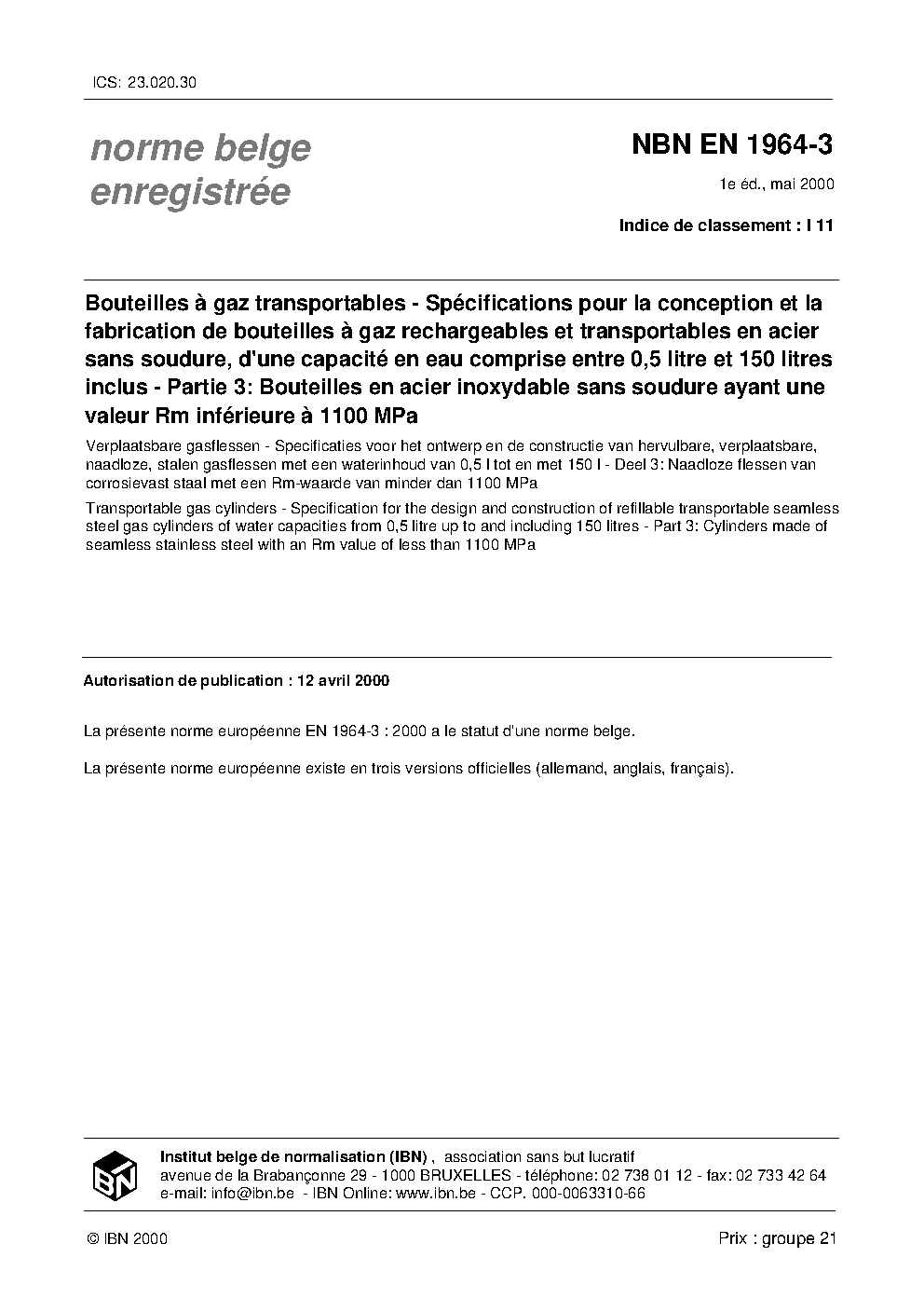 | Publisher | Bureau de Normalisation Belge (NBN) |