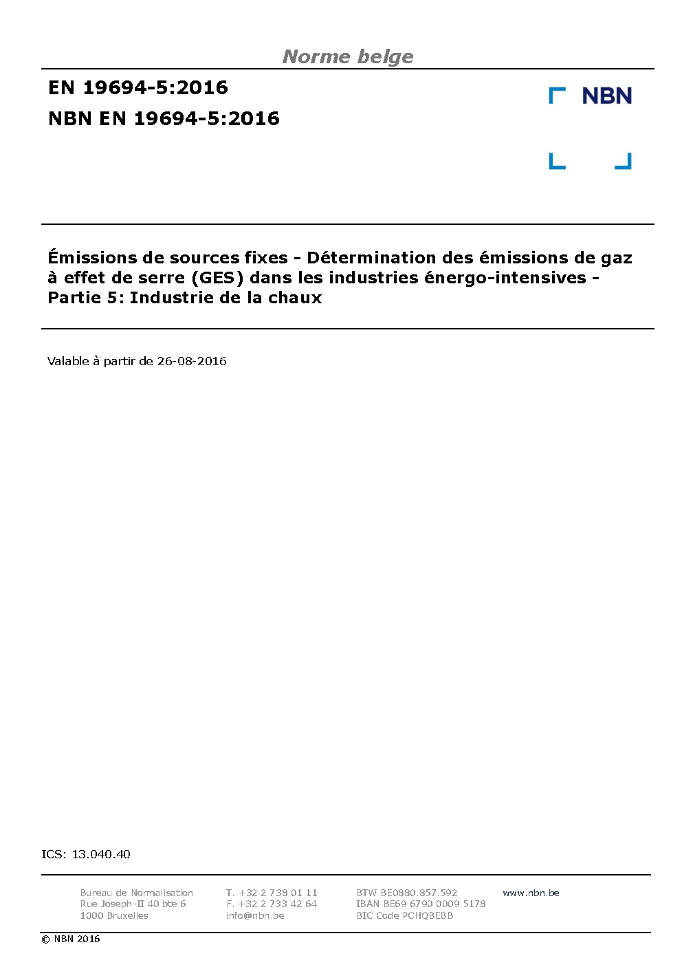 | Publisher | Bureau de Normalisation Belge (NBN) |