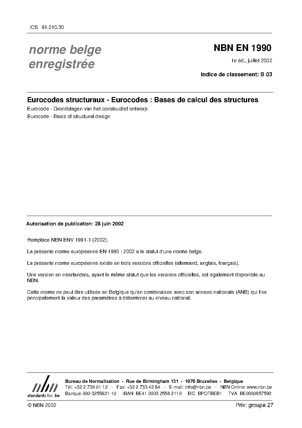 | Publisher | Bureau de Normalisation Belge (NBN) |