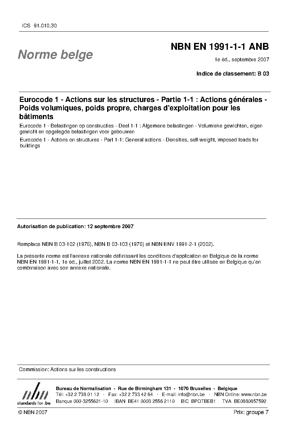| Publisher | Bureau de Normalisation Belge (NBN) |
