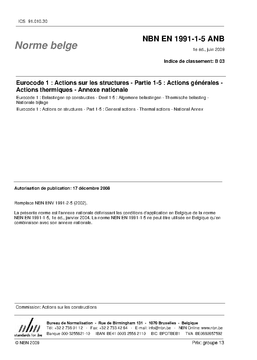 NBN EN 1991-1-5 ANB:2009