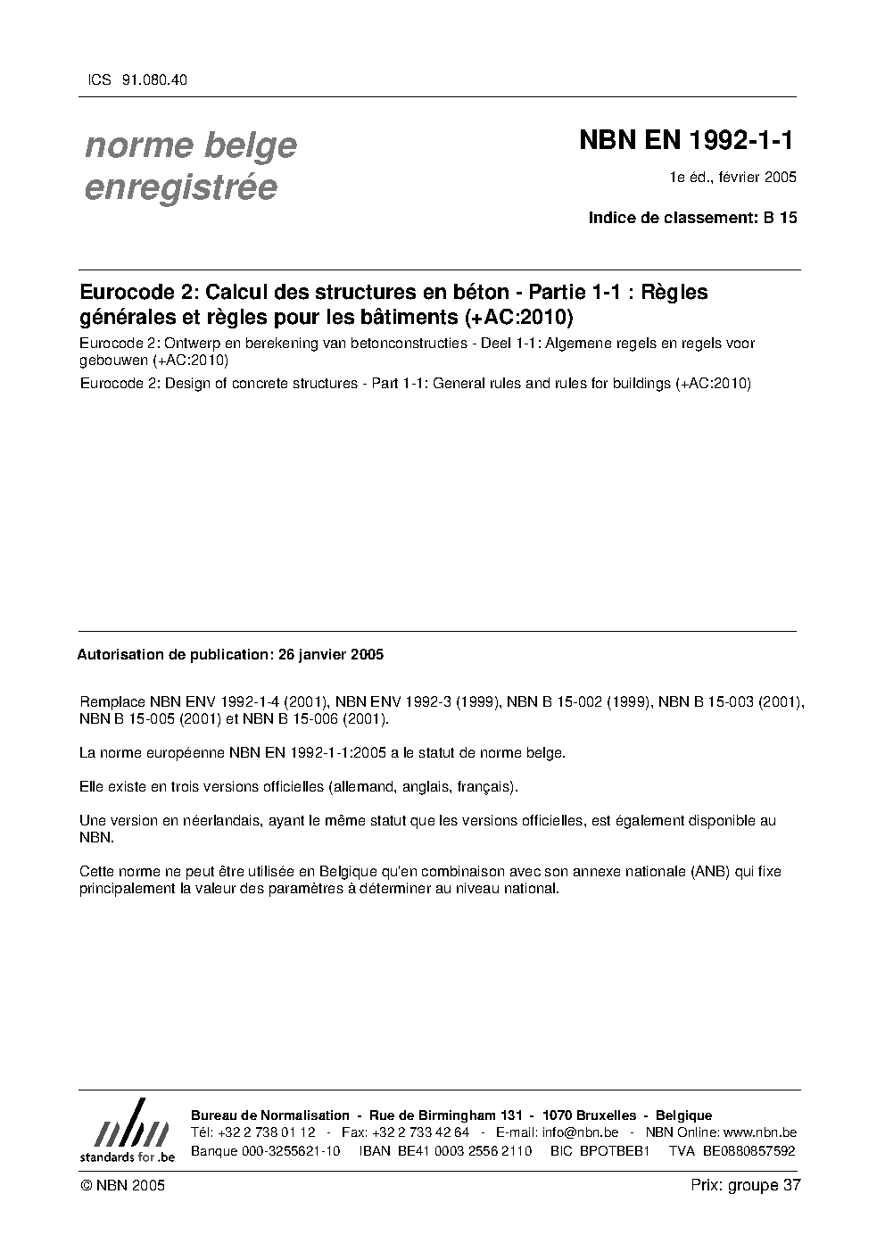 | Publisher | Bureau de Normalisation Belge (NBN) |