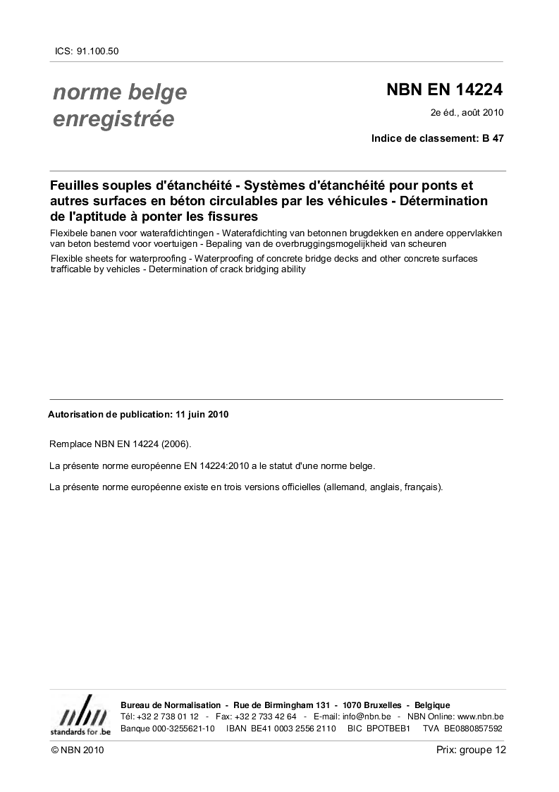 | Publisher | Bureau de Normalisation Belge (NBN) |