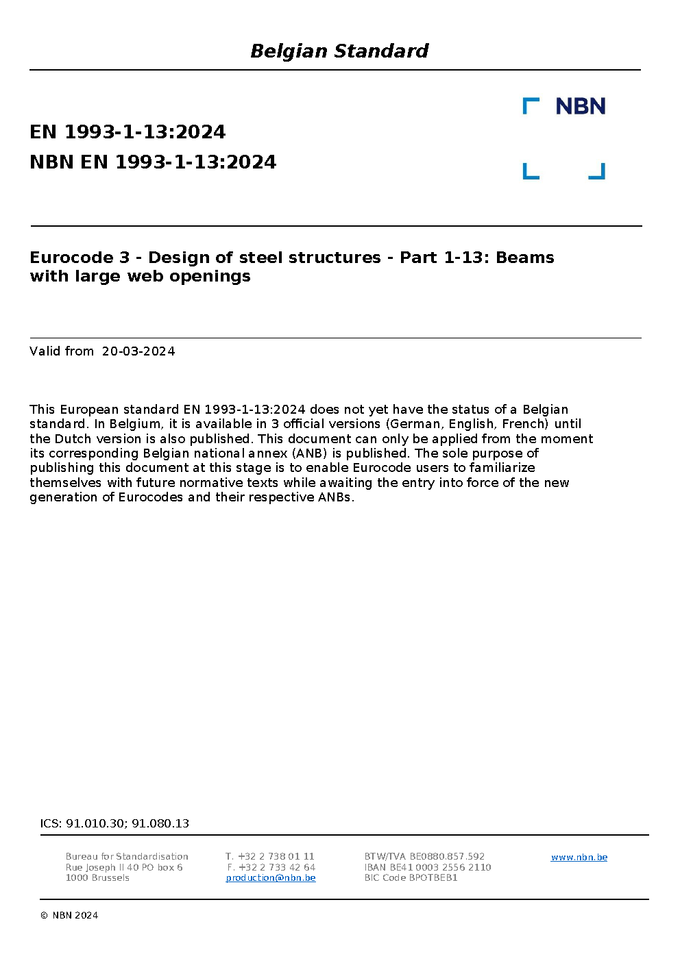 | Publisher | Bureau de Normalisation Belge (NBN) |