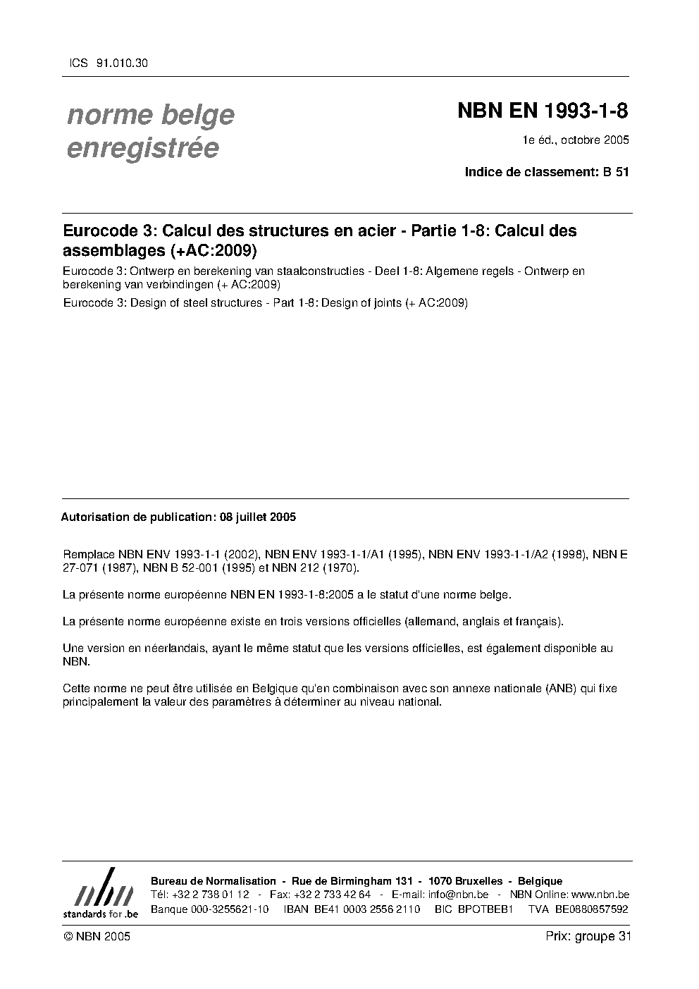 | Publisher | Bureau de Normalisation Belge (NBN) |