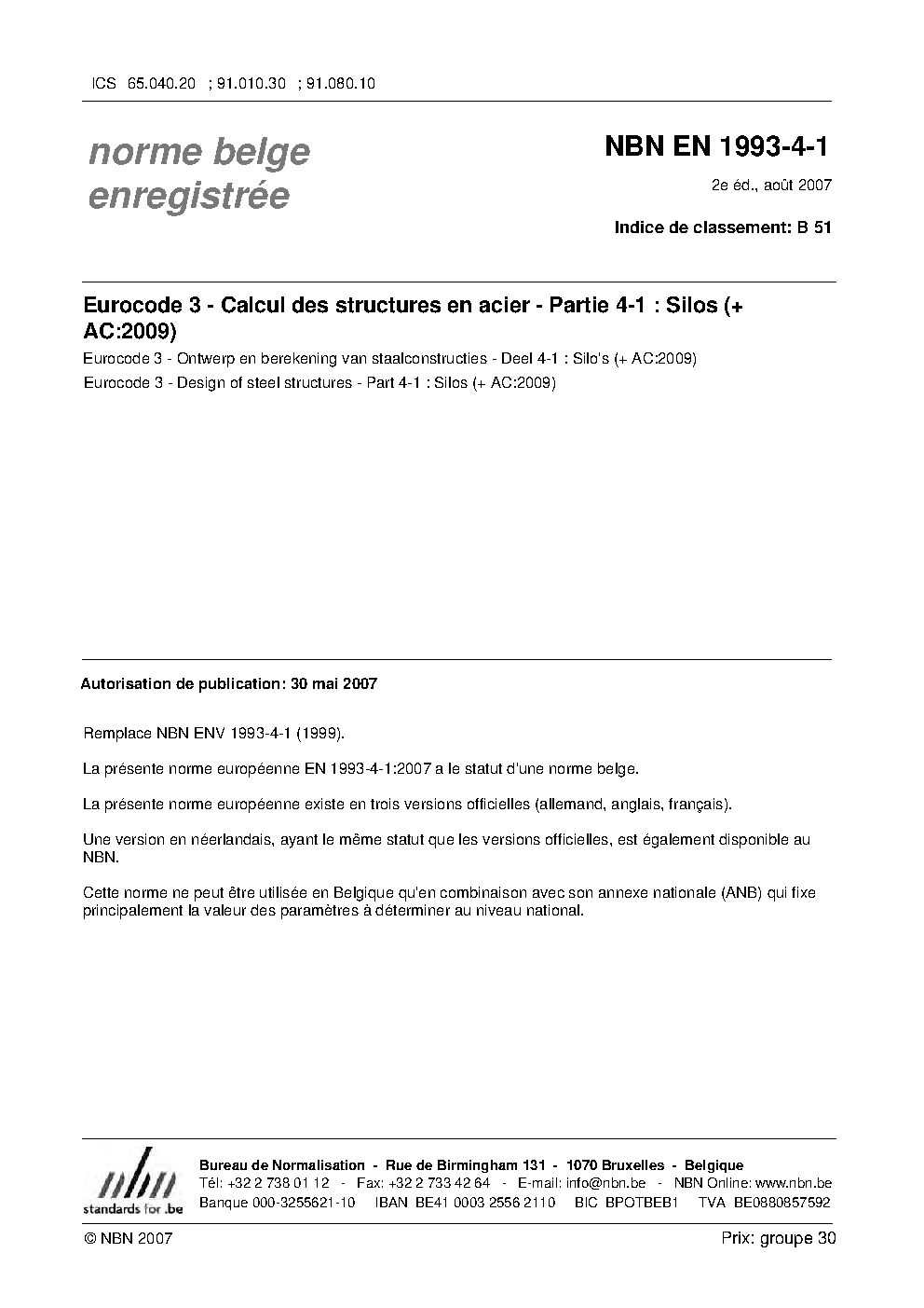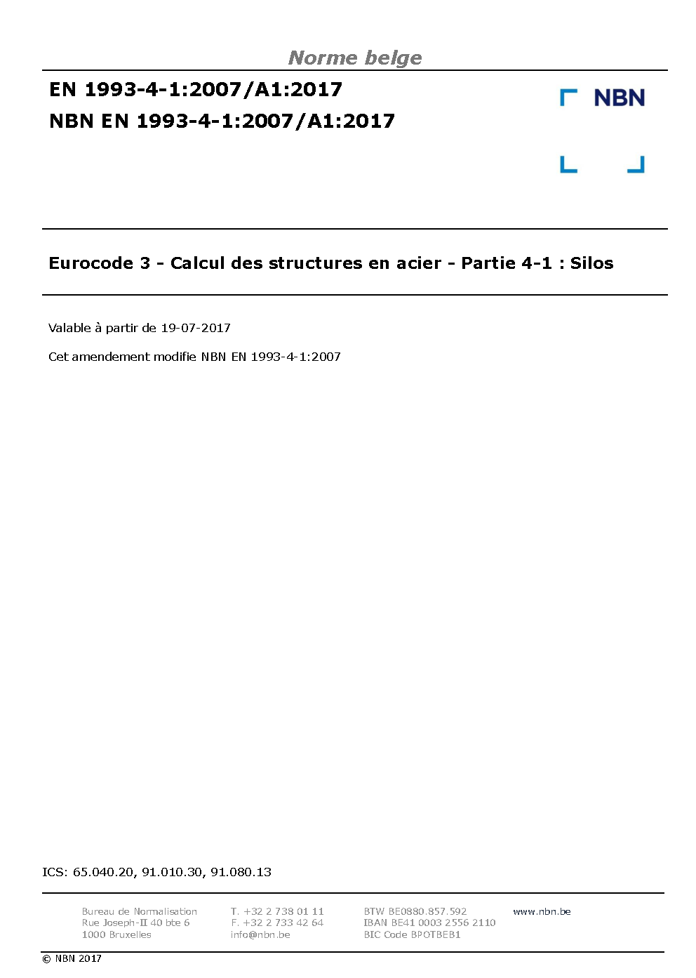 | Publisher | Bureau de Normalisation Belge (NBN) |