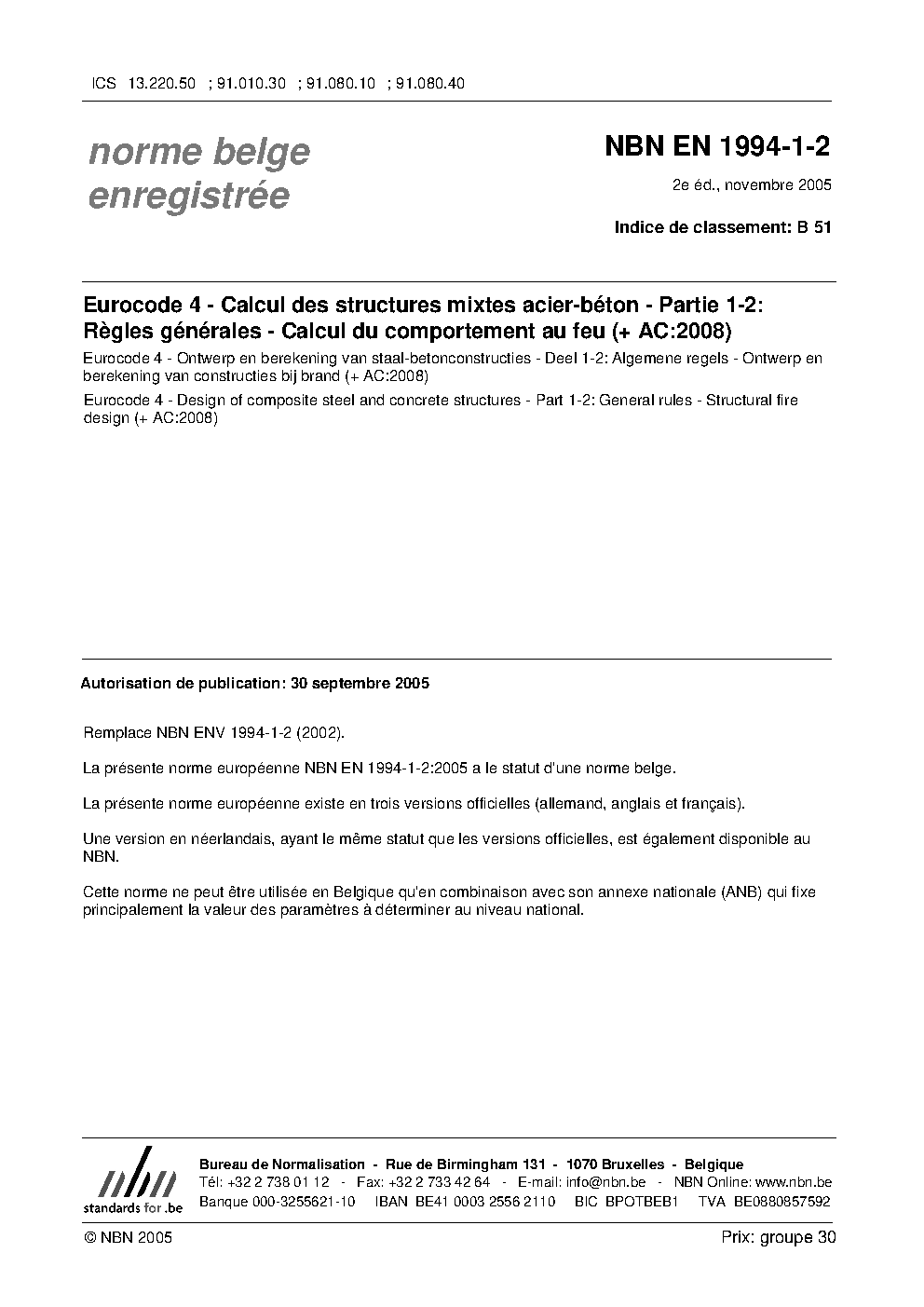 | Publisher | Bureau de Normalisation Belge (NBN) |