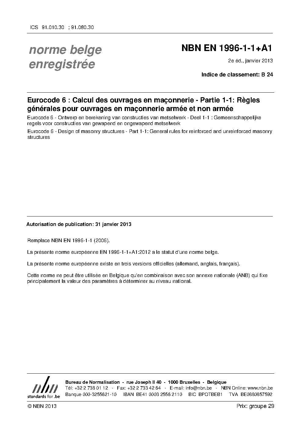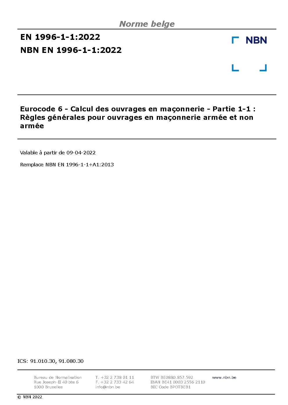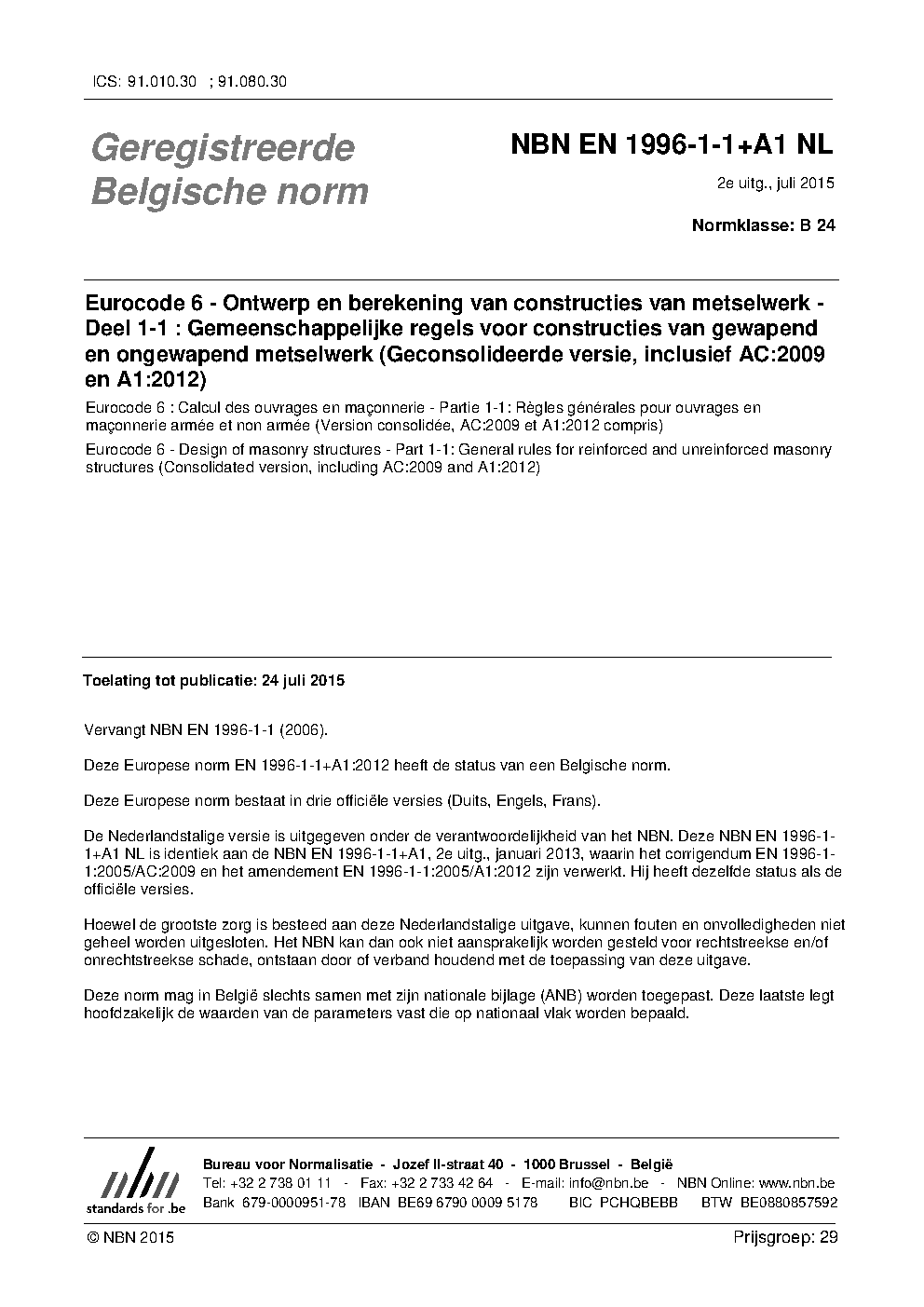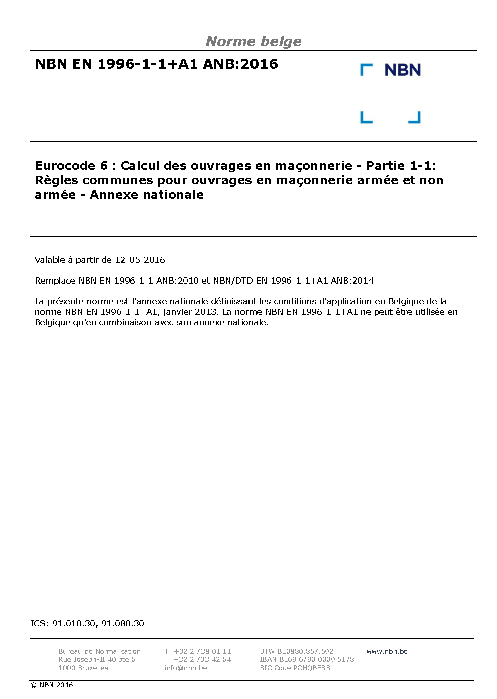 | Publisher | Bureau de Normalisation Belge (NBN) |