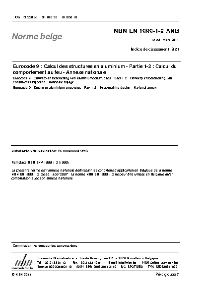 Eurocode 9 : Design of aluminium structures - Part 1-2 : Structural fire design - National annex