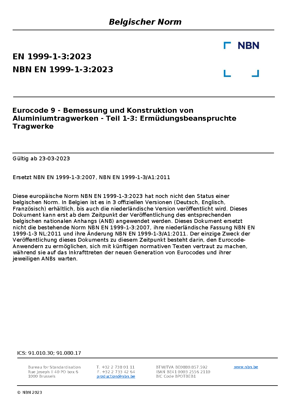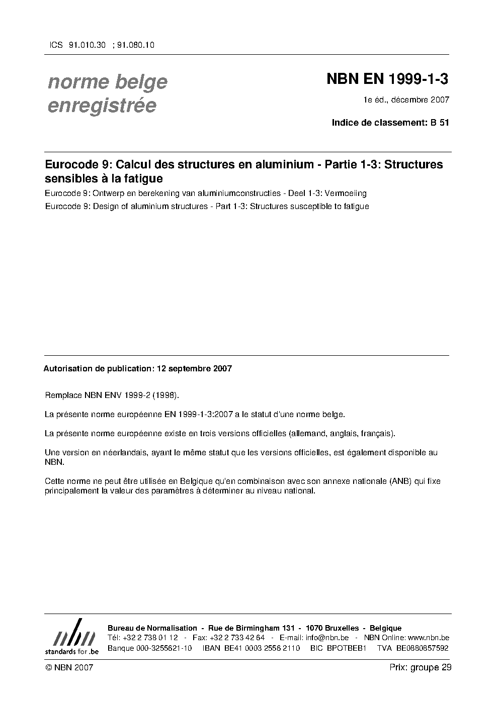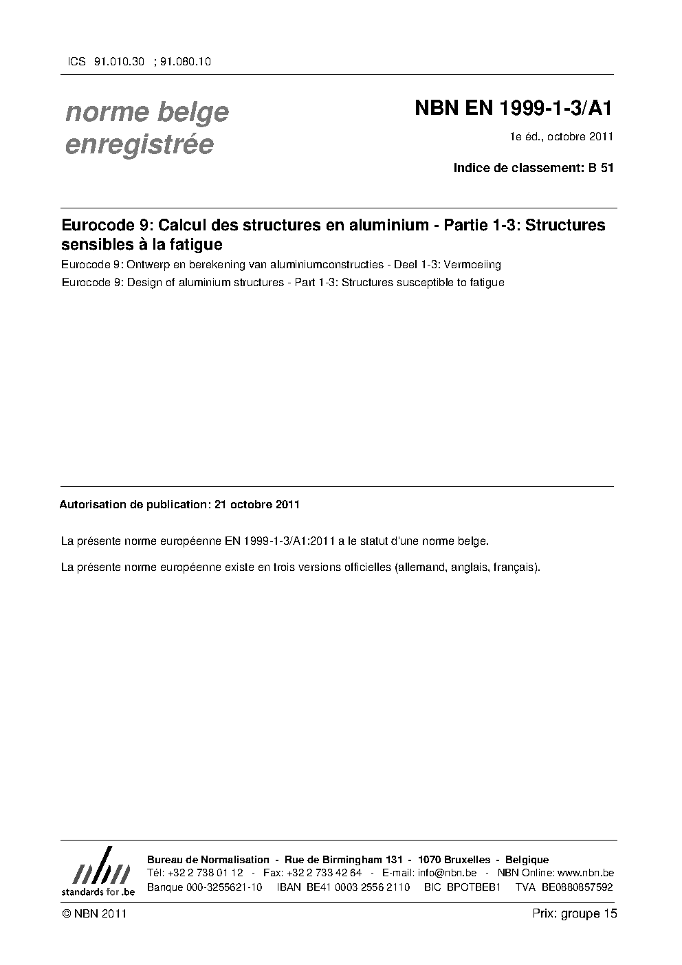 | Publisher | Bureau de Normalisation Belge (NBN) |