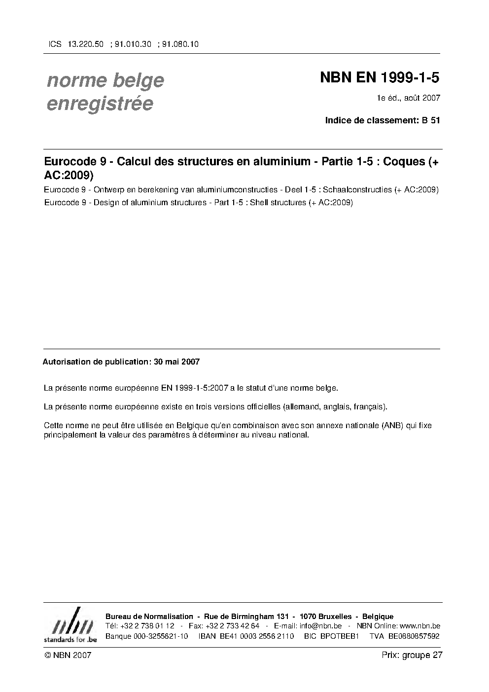 | Publisher | Bureau de Normalisation Belge (NBN) |