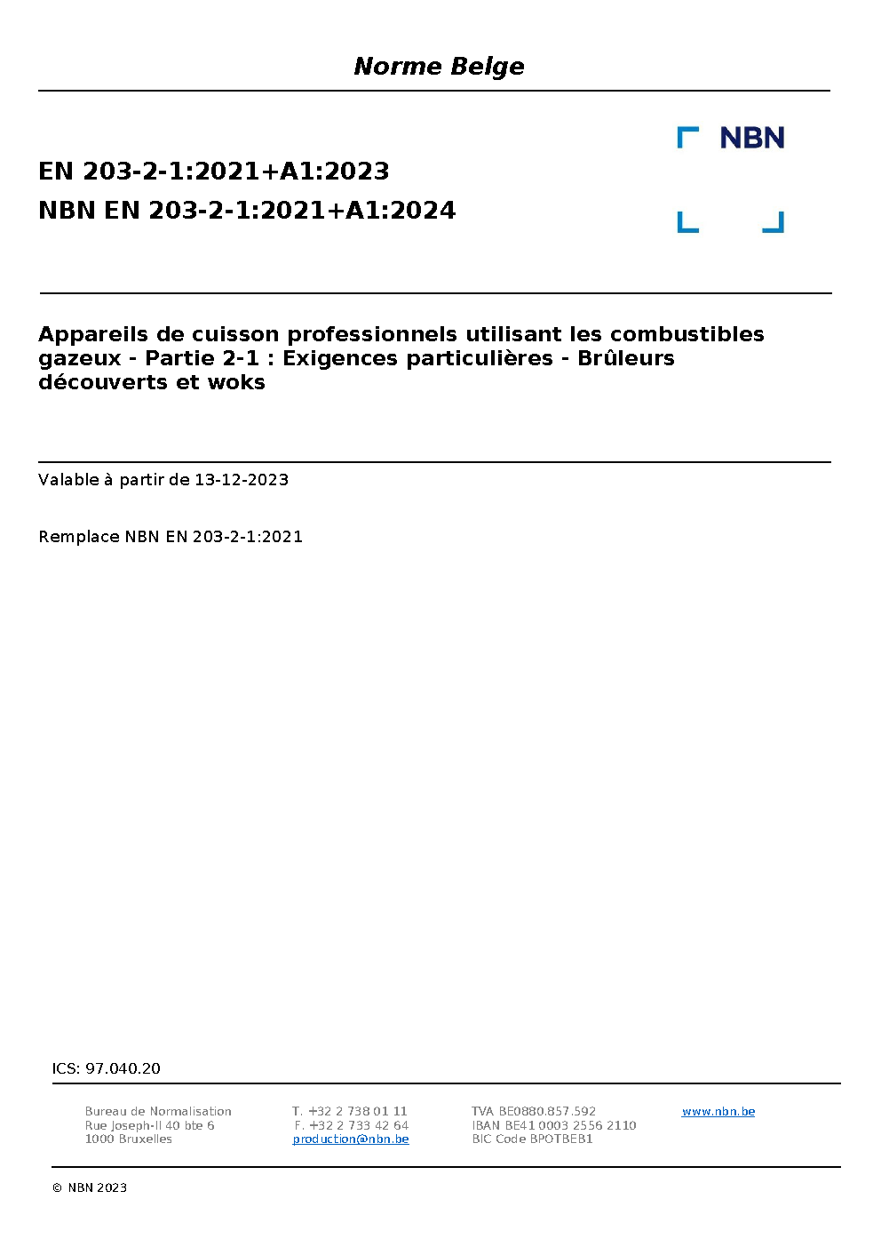| Publisher | Bureau de Normalisation Belge (NBN) |
