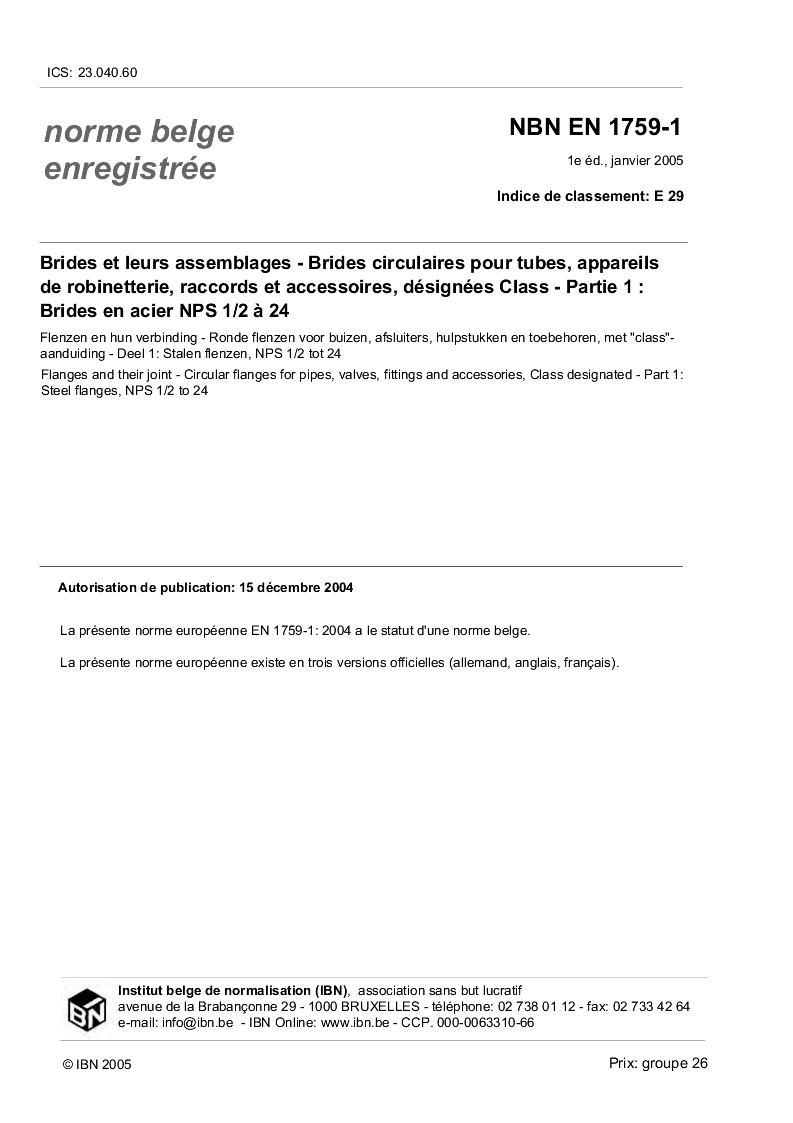 | Publisher | Bureau de Normalisation Belge (NBN) |
