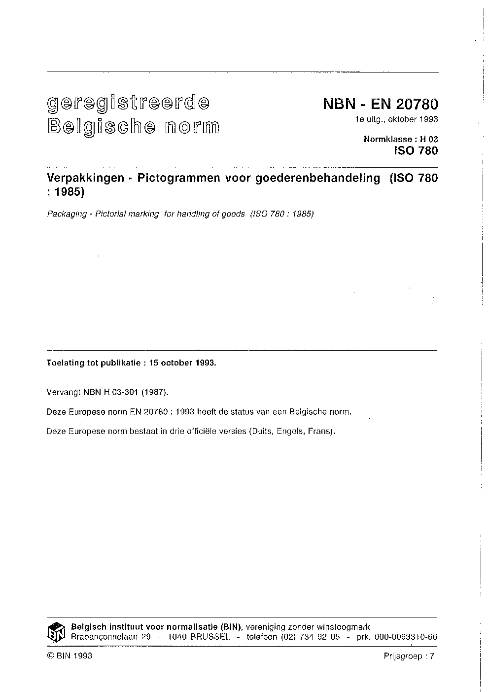 | Publisher | Bureau de Normalisation Belge (NBN) |