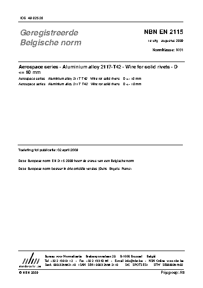 NBN EN 2115:2009