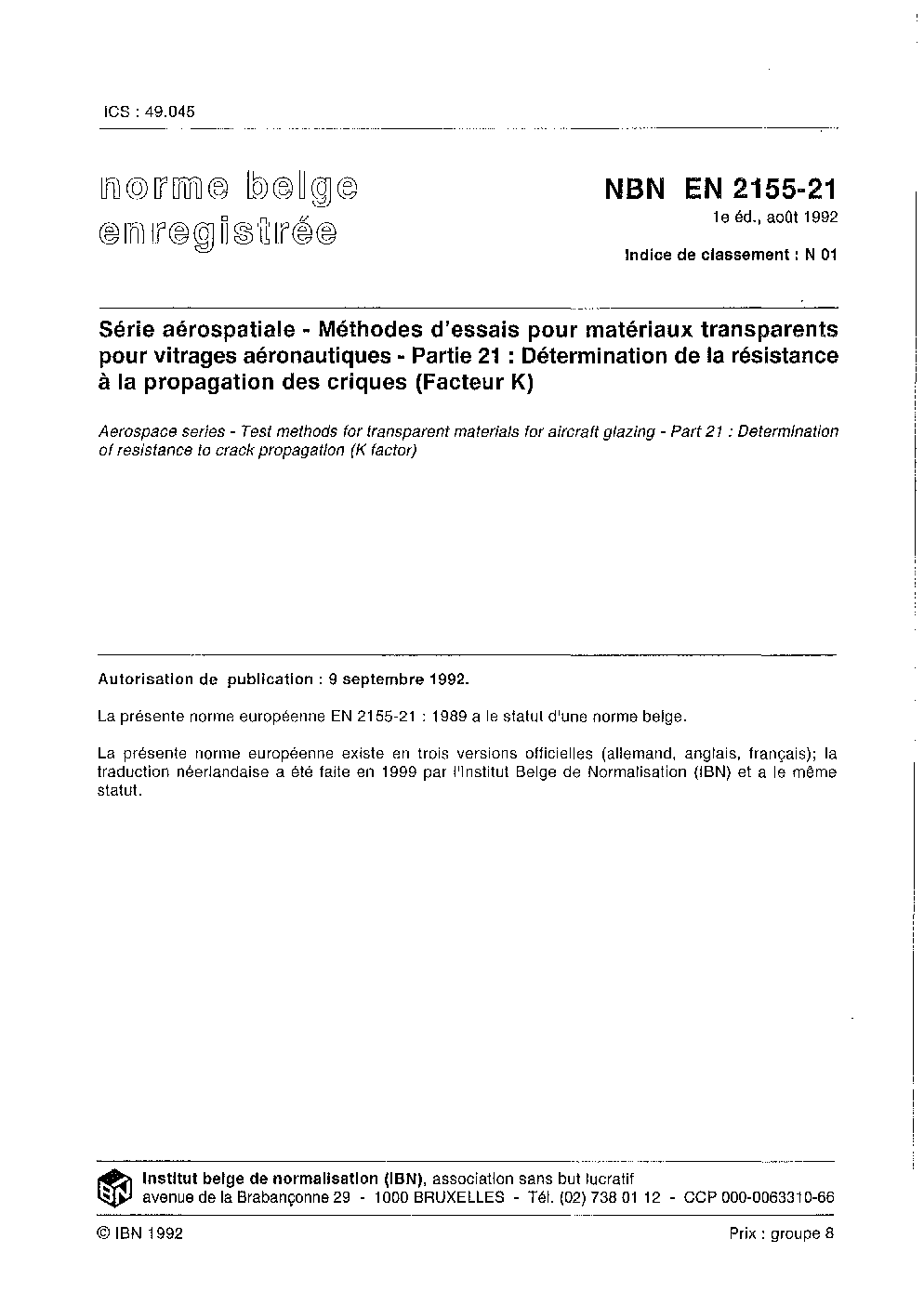 | Publisher | Bureau de Normalisation Belge (NBN) |