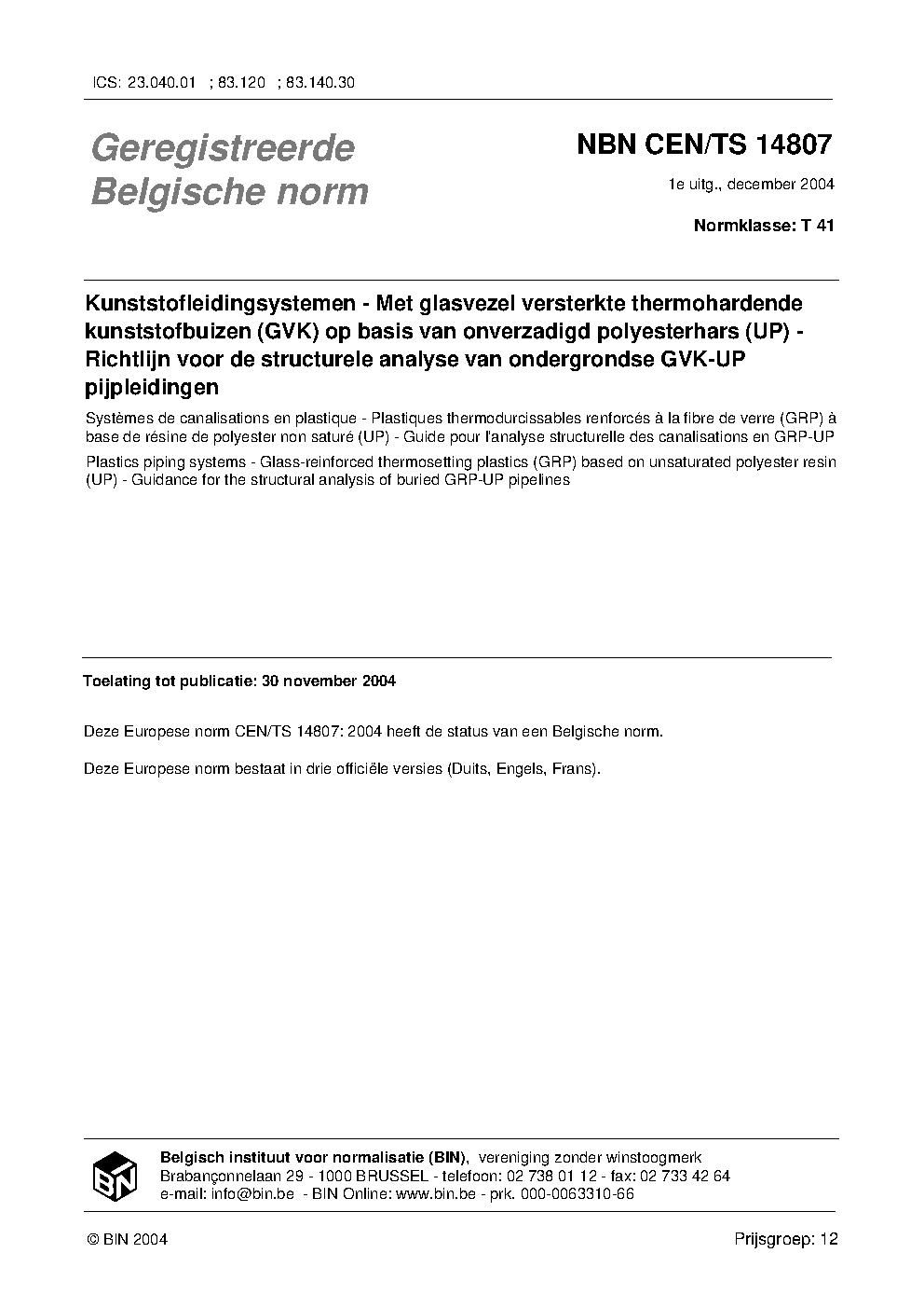 | Publisher | Bureau de Normalisation Belge (NBN) |
