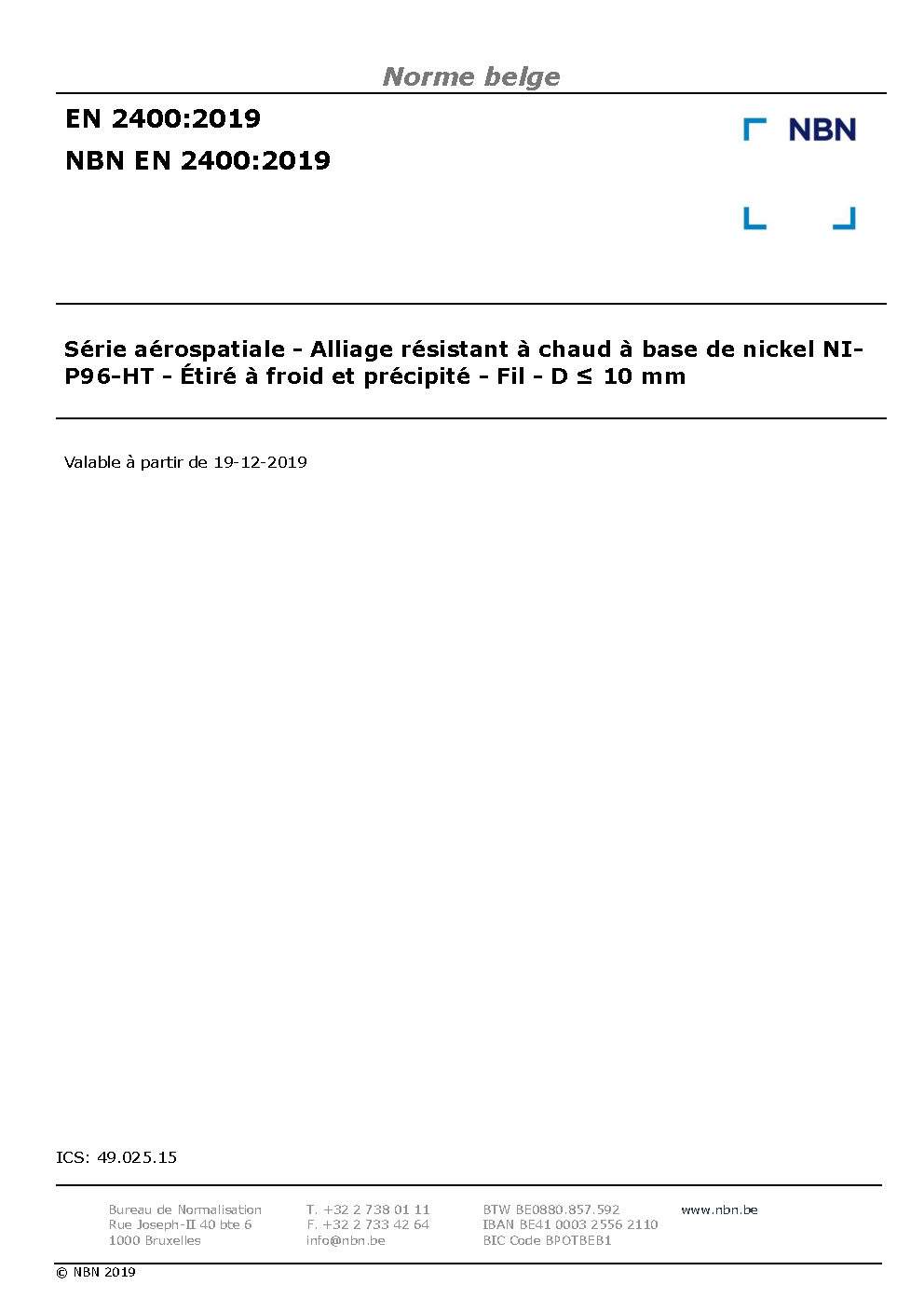 | Publisher | Bureau de Normalisation Belge (NBN) |
