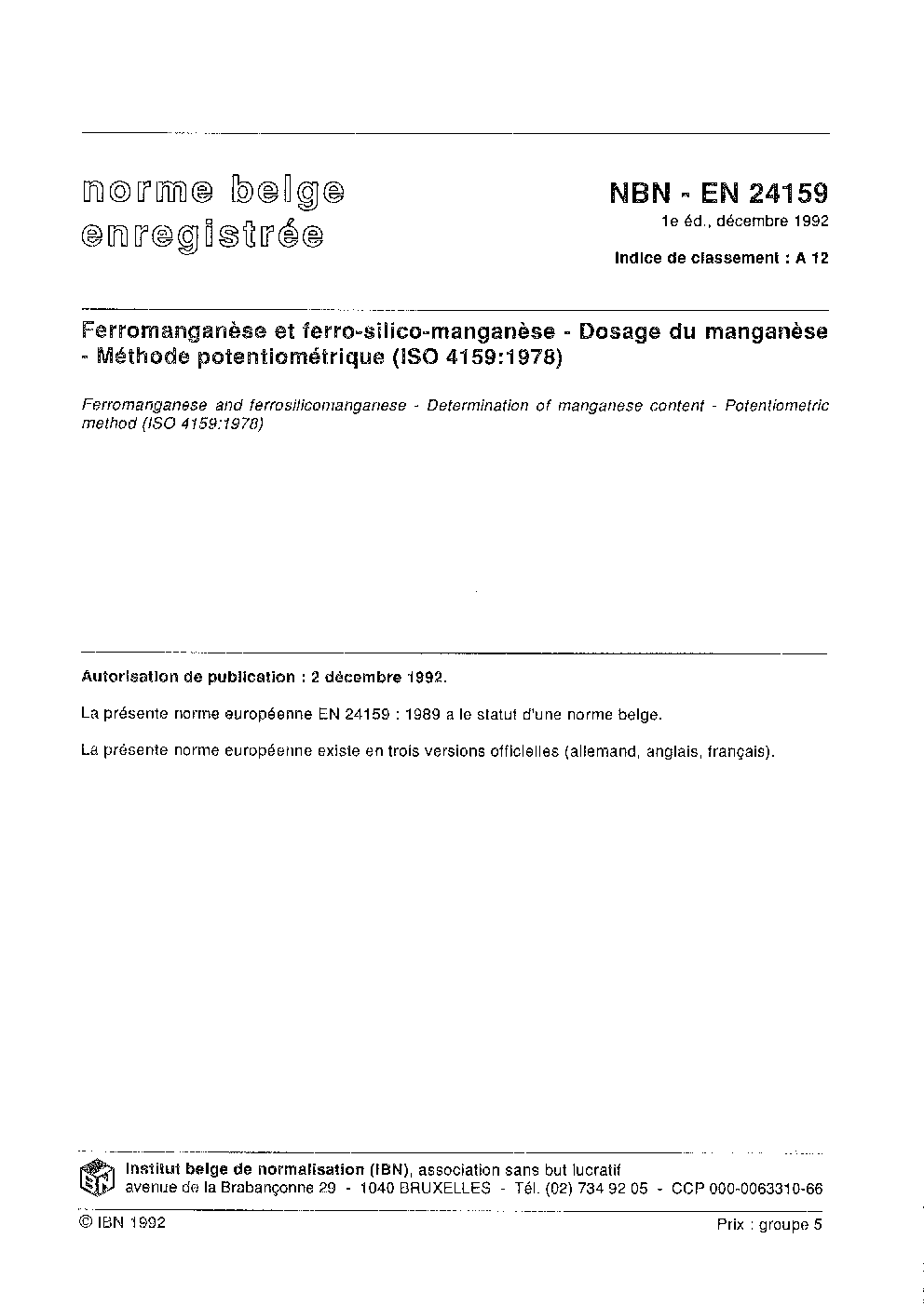 | Publisher | Bureau de Normalisation Belge (NBN) |