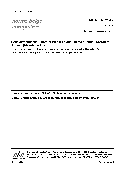 | Publisher | Bureau de Normalisation Belge (NBN) |
