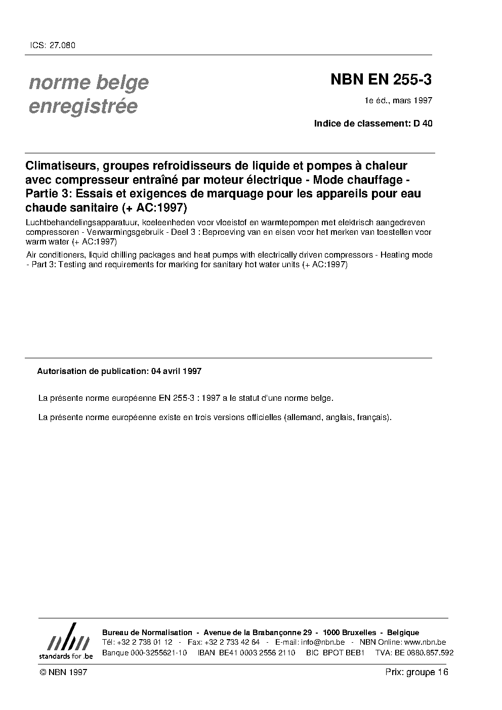 | Publisher | Bureau de Normalisation Belge (NBN) |