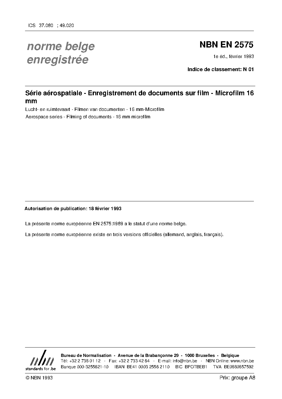 | Publisher | Bureau de Normalisation Belge (NBN) |