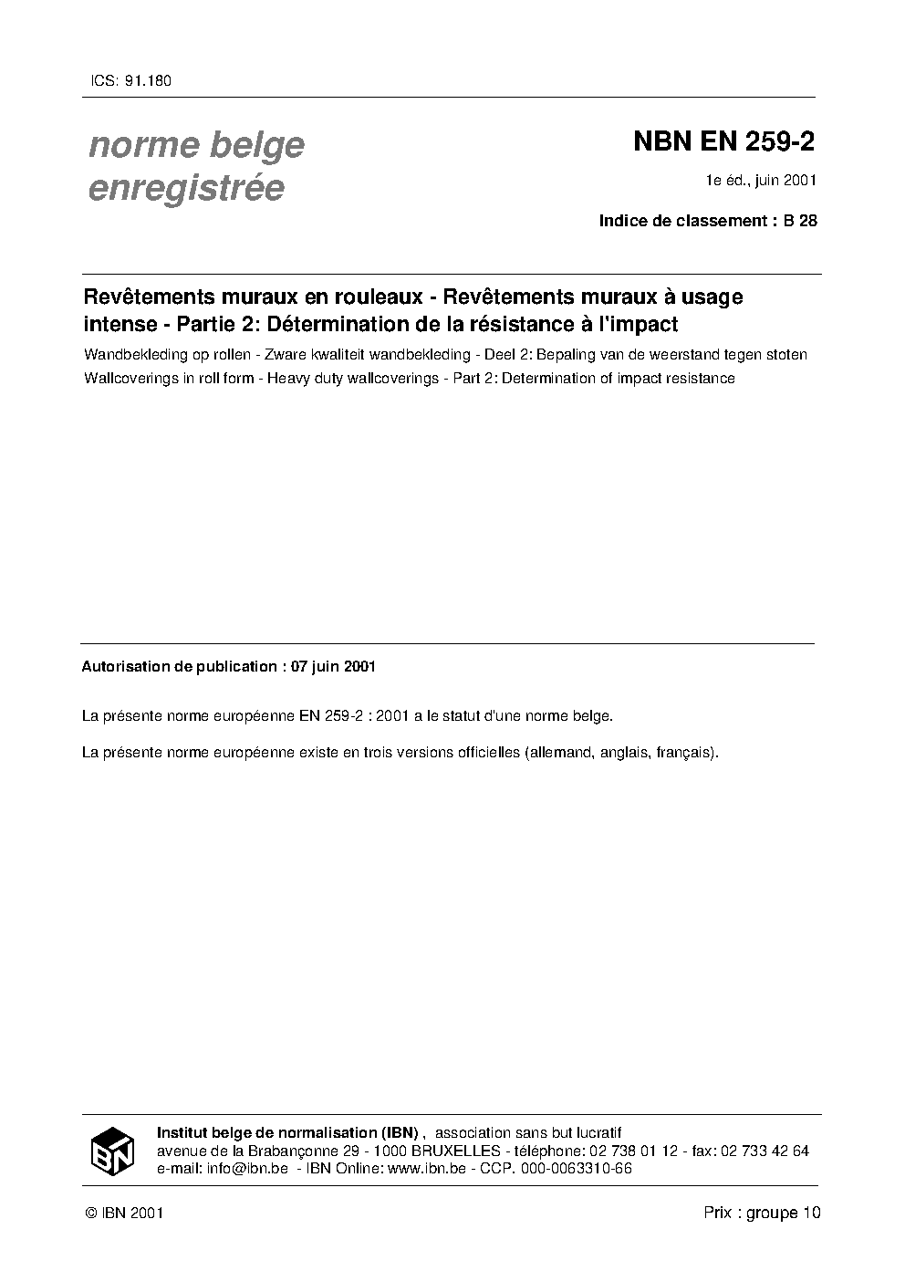 | Publisher | Bureau de Normalisation Belge (NBN) |