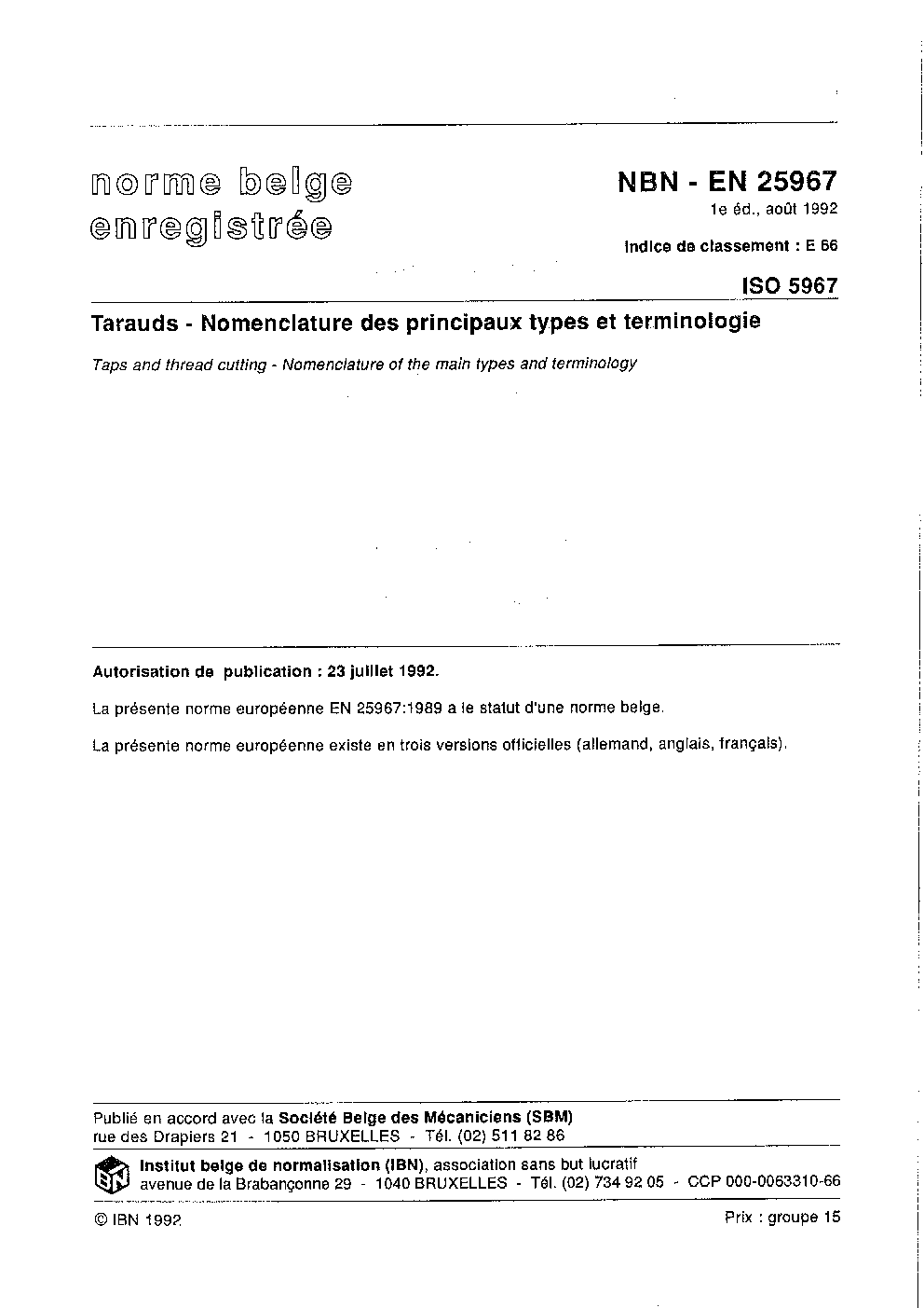 | Publisher | Bureau de Normalisation Belge (NBN) |
