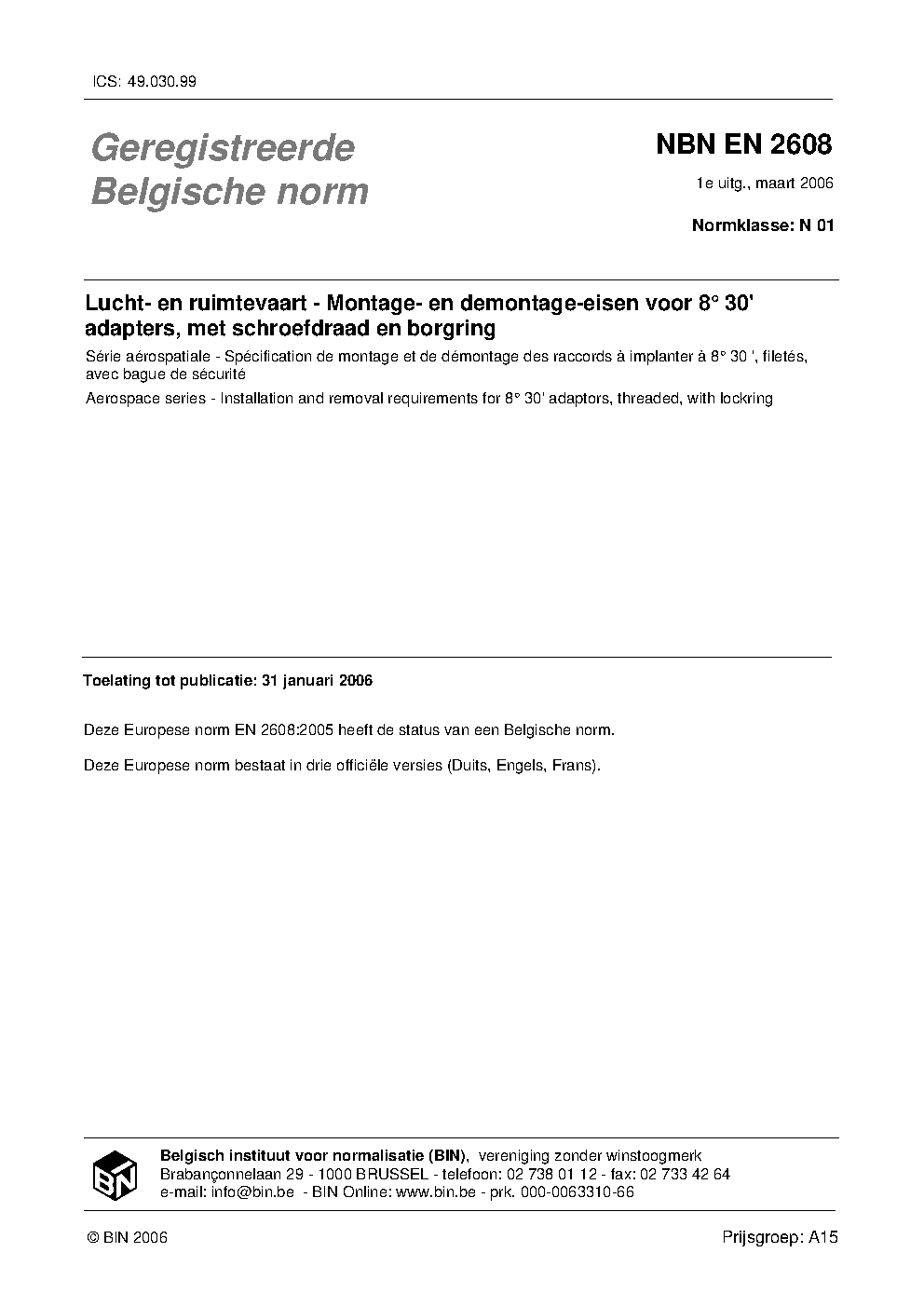 | Publisher | Bureau de Normalisation Belge (NBN) |