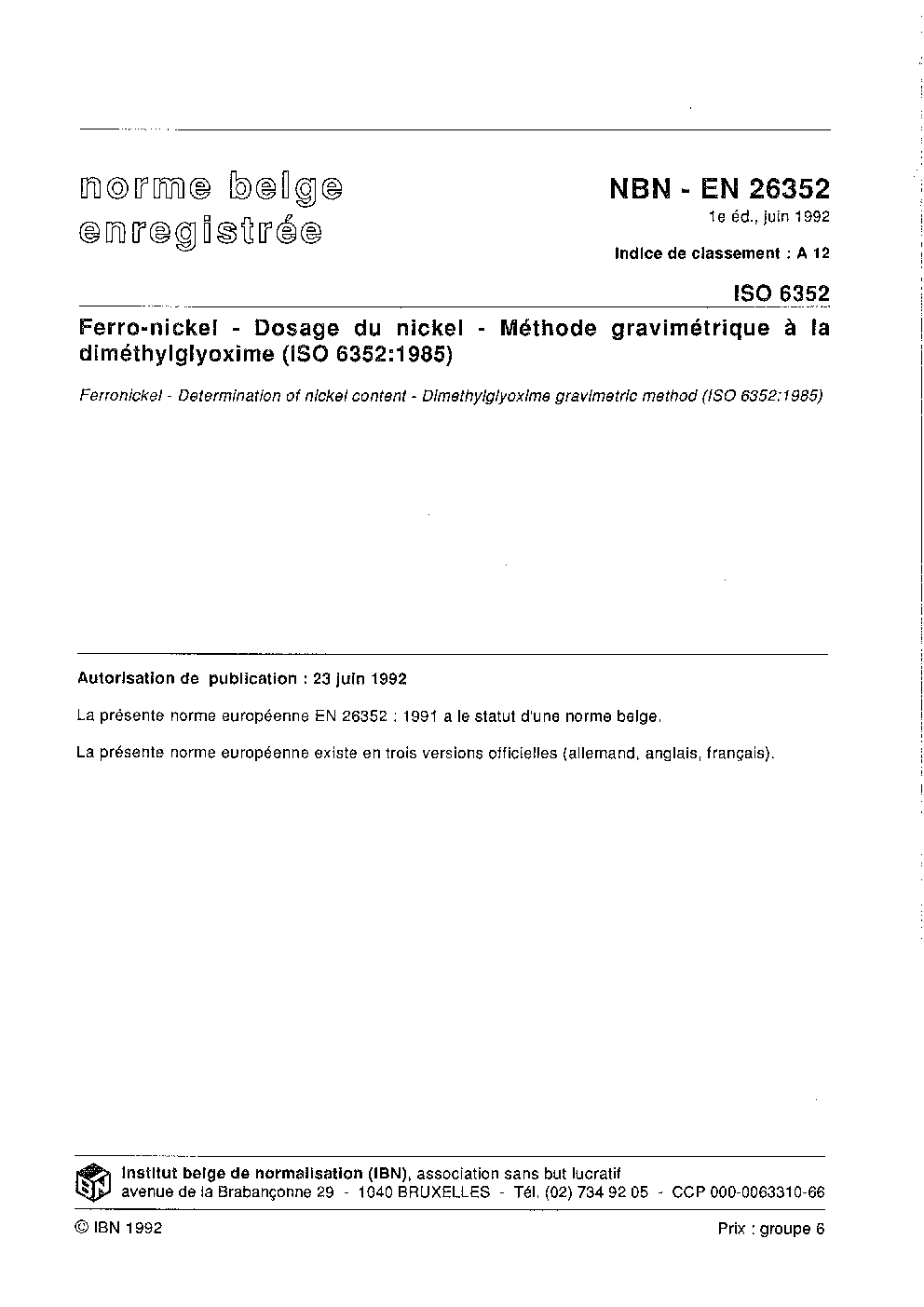 | Publisher | Bureau de Normalisation Belge (NBN) |