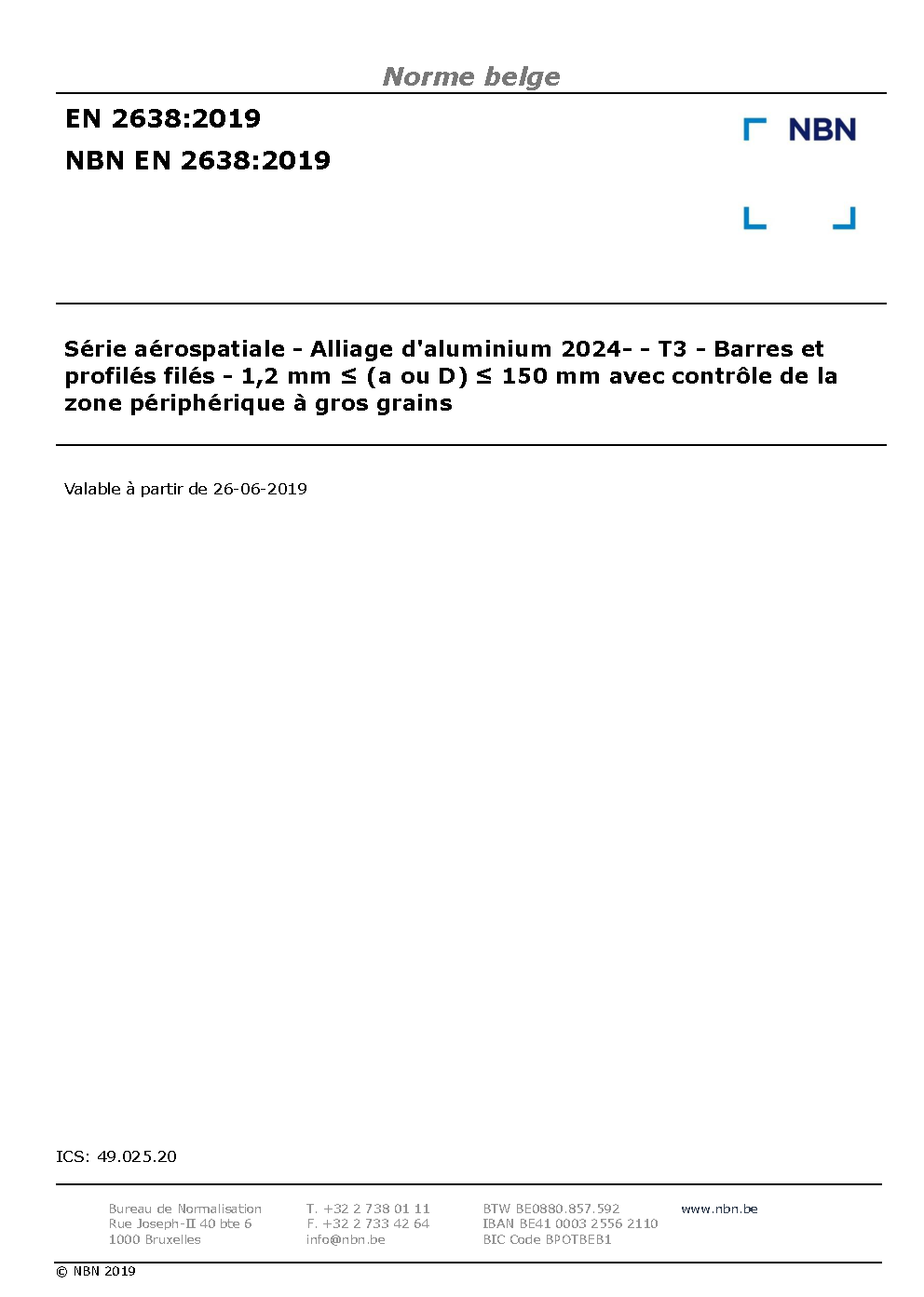NBN EN 2638:2019