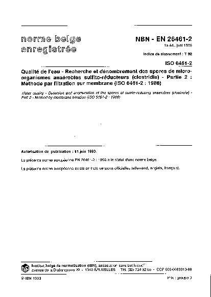 Water quality - Detection and enumeration of the spores of sulfite-reducing anaerobes (clostridia) - Part 2: Method by membrane filtration (ISO 6461-2:1986)