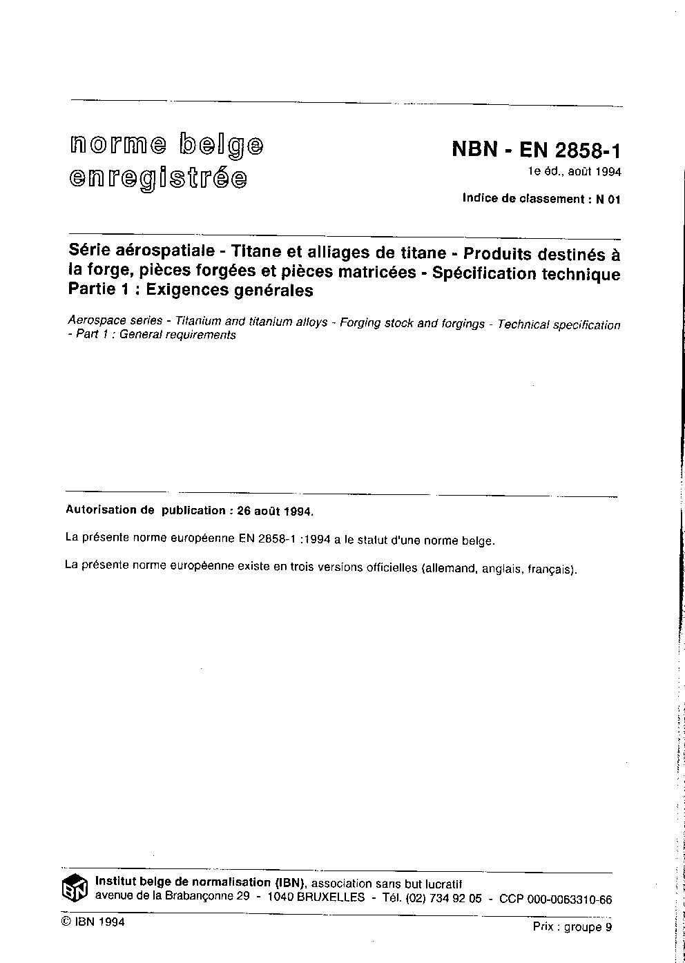 | Publisher | Bureau de Normalisation Belge (NBN) |
