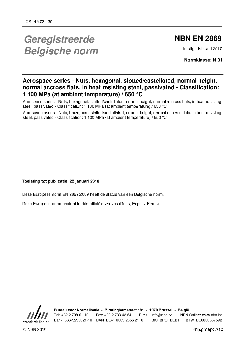 | Publisher | Bureau de Normalisation Belge (NBN) |