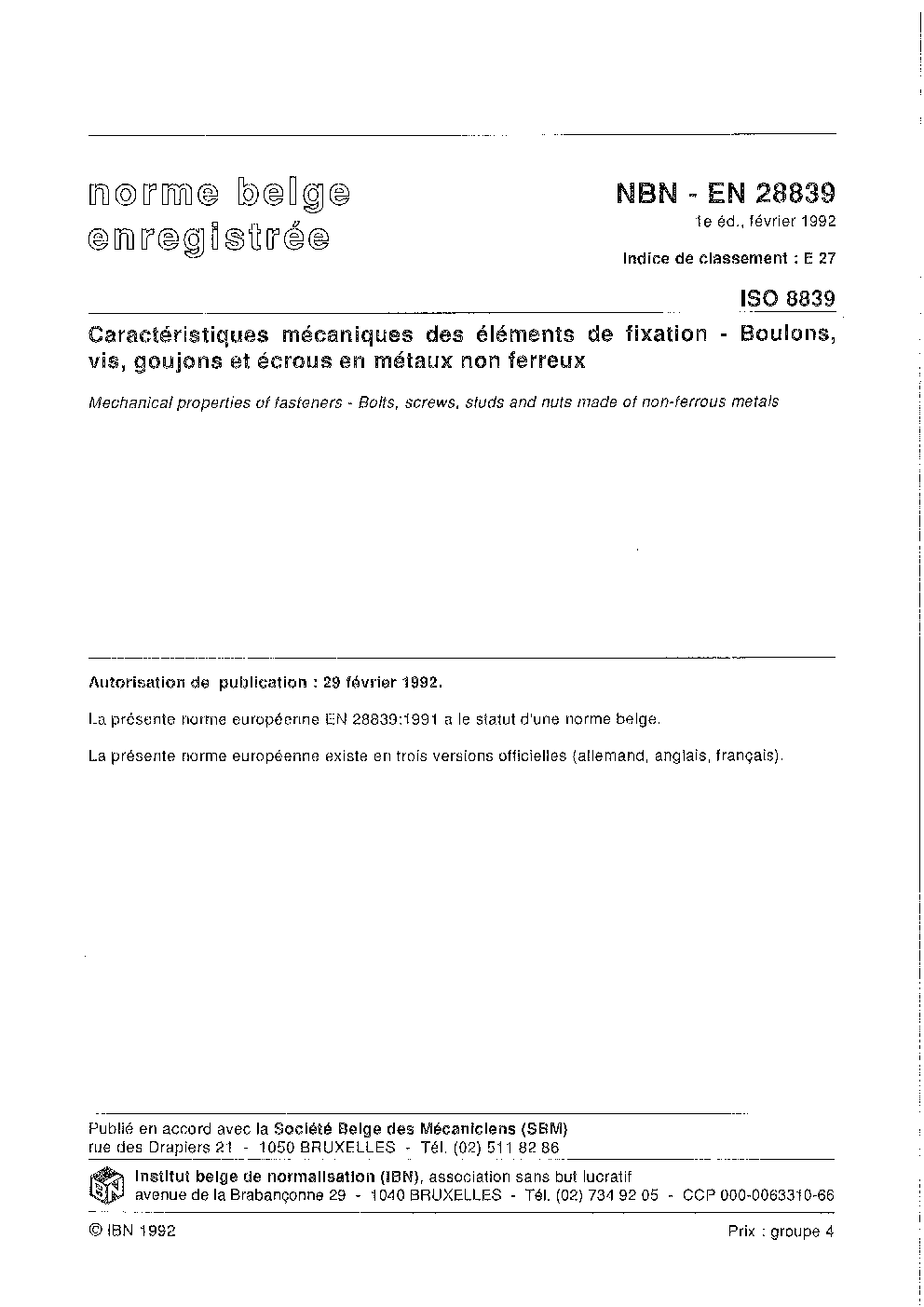 | Publisher | Bureau de Normalisation Belge (NBN) |