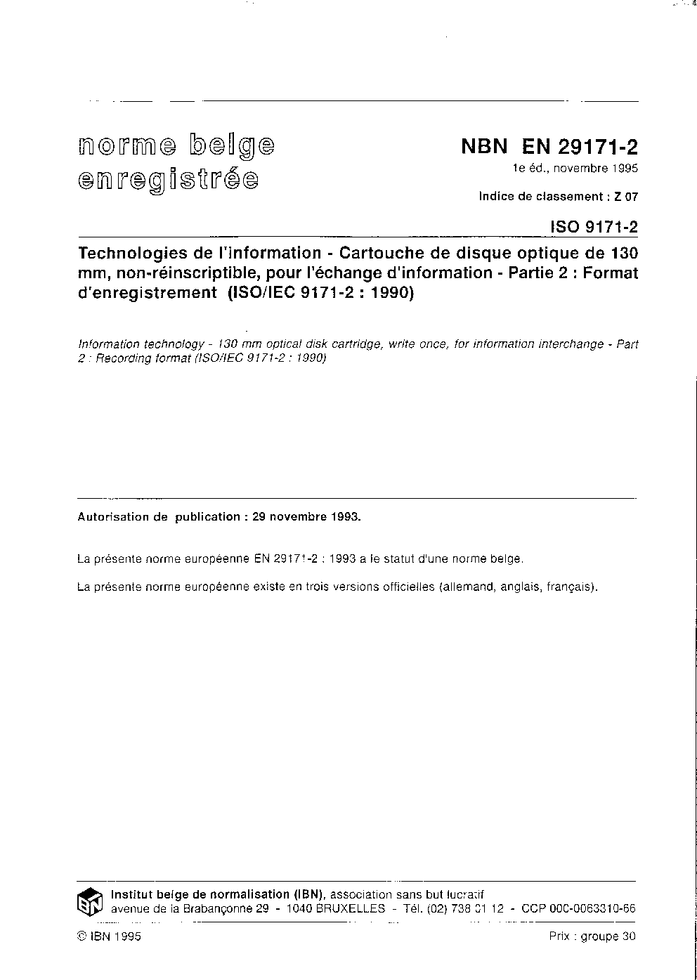 | Publisher | Bureau de Normalisation Belge (NBN) |