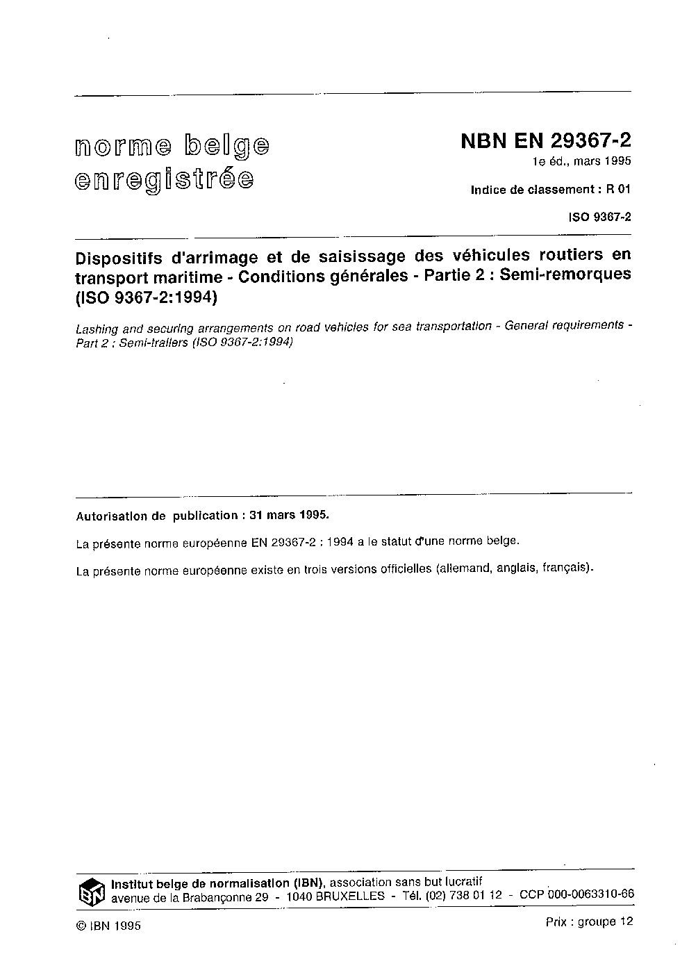 | Publisher | Bureau de Normalisation Belge (NBN) |