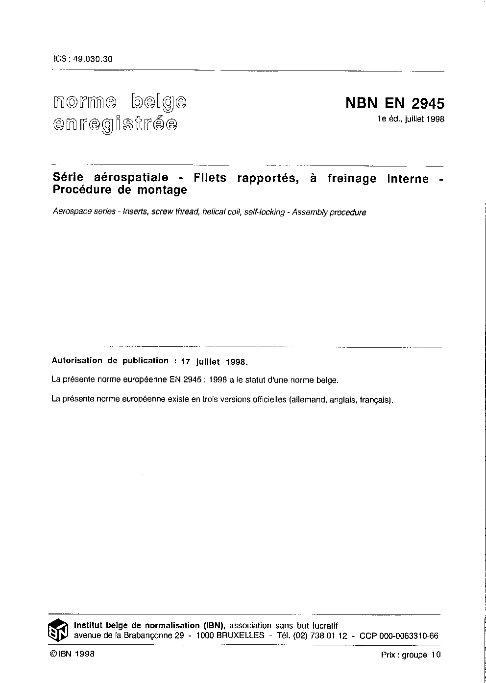 | Publisher | Bureau de Normalisation Belge (NBN) |