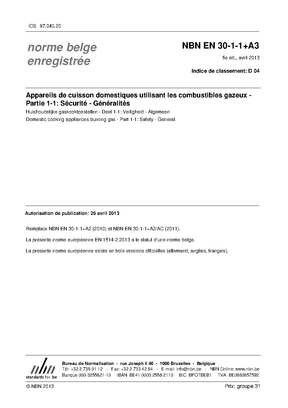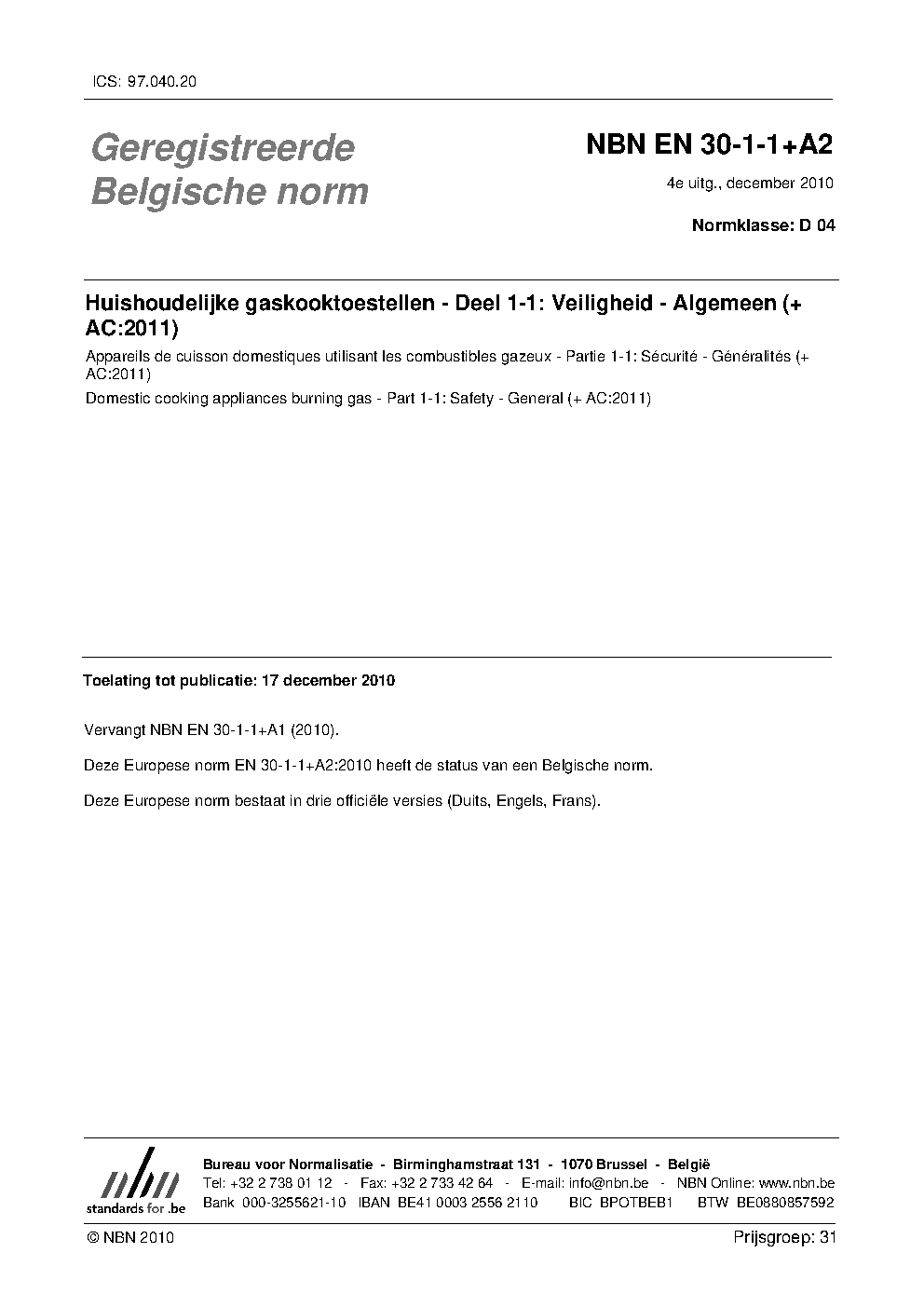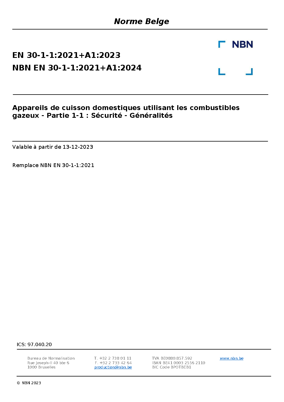 | Publisher | Bureau de Normalisation Belge (NBN) |
